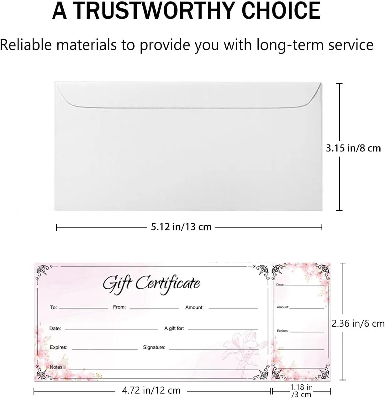 50 Pack pink Gift Certificates with Envelopes 2.36x5.9 Inch- Blank Gift Cards with Name and Address ...