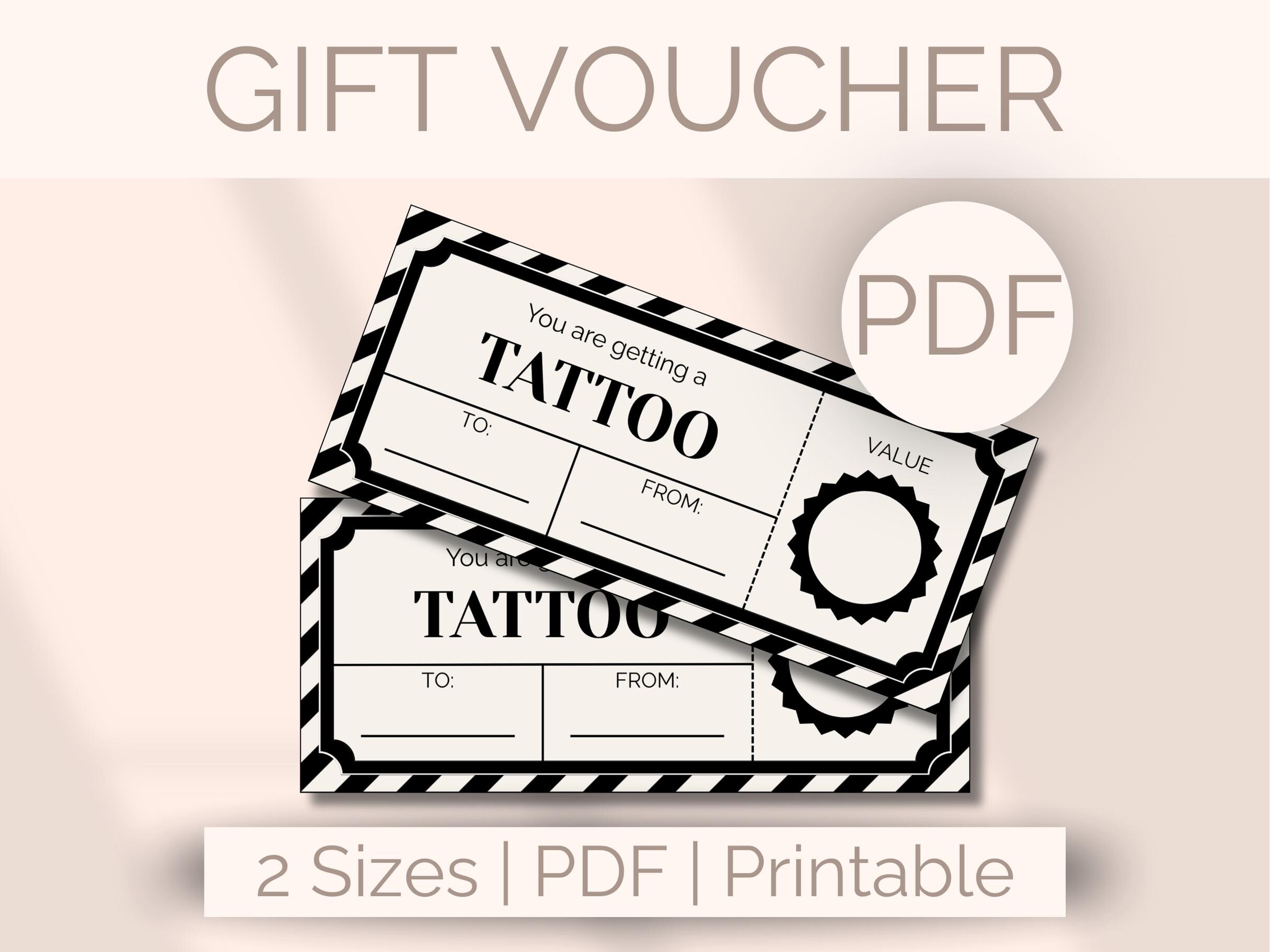 Tattoo Voucher Printable Tattoo Gift Certificate Birthday Gift Card...