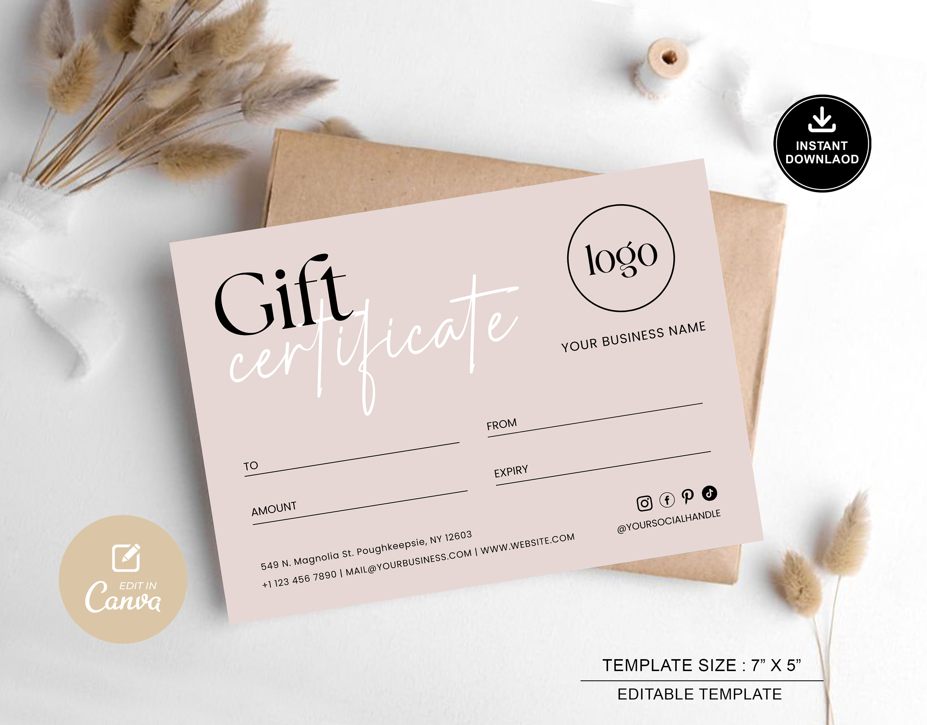 Gift Certificate Template, Editable Gift Certificate Template, Mode...