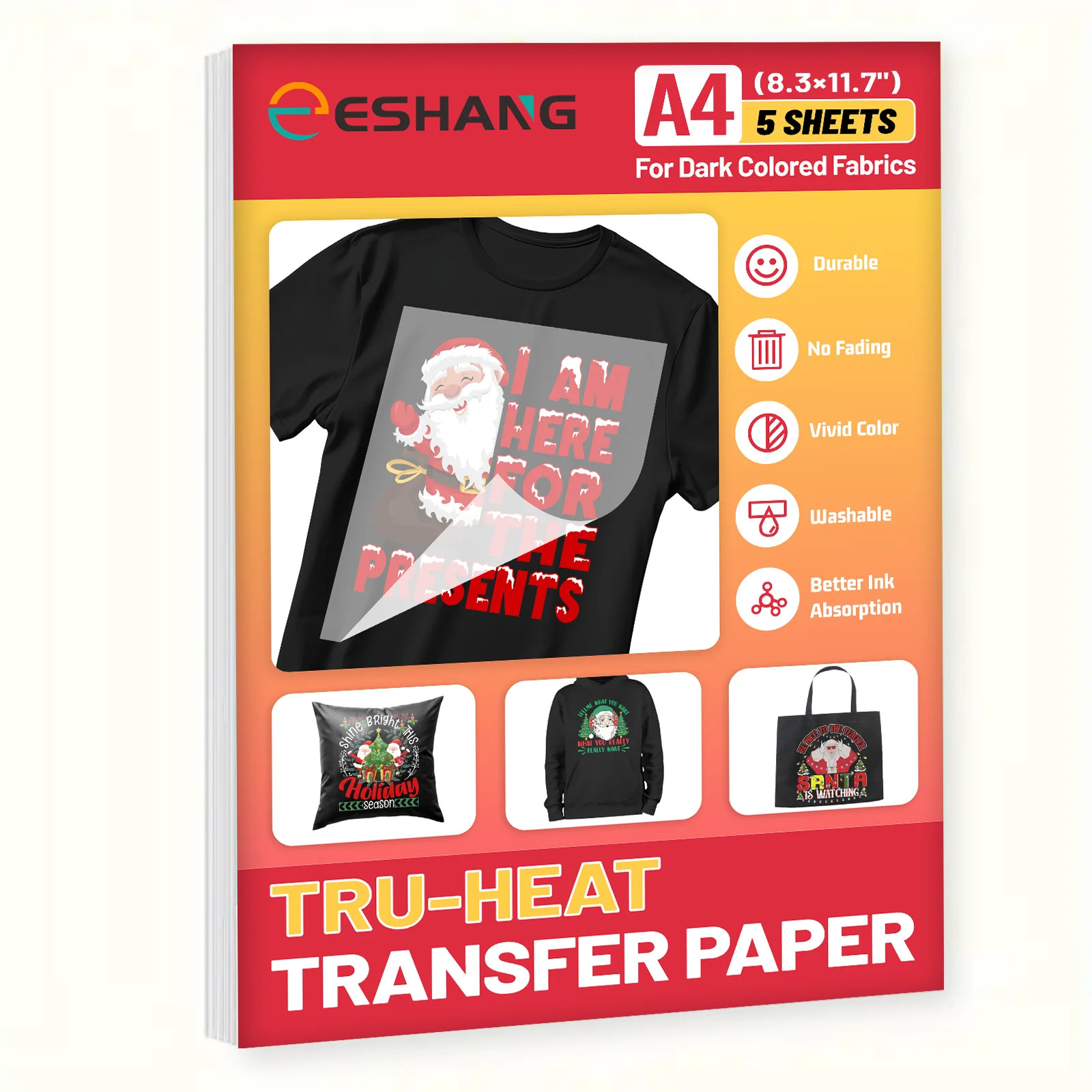 ESHANG 5 Sheets A4 Heat Transfer Paper for Black and Dark Fabric Iron-on Transfer Paper for T Shirt ...