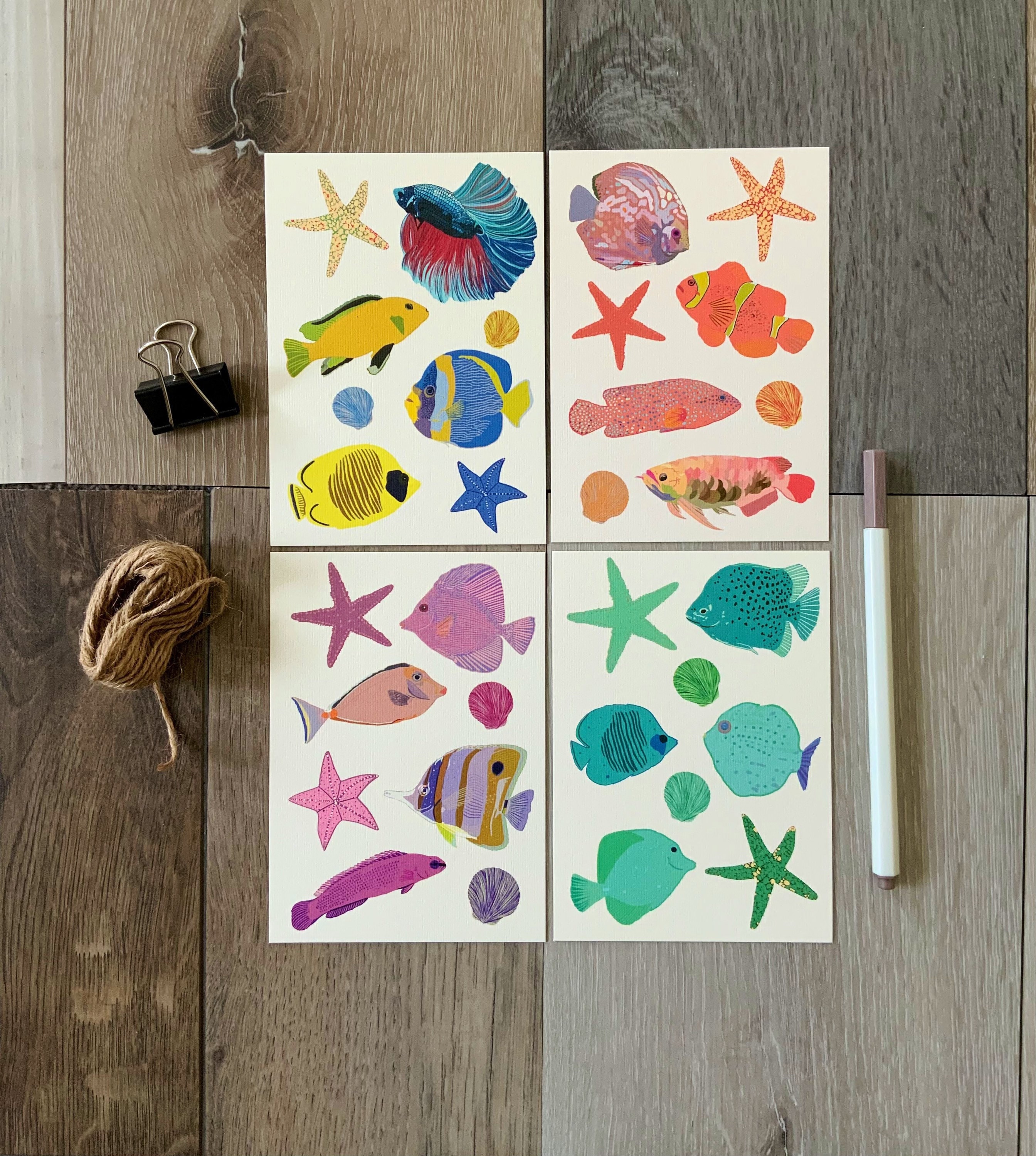 Pack of Four Fish Postcard Set - Fish Postcards - A6 Postcards - Co...