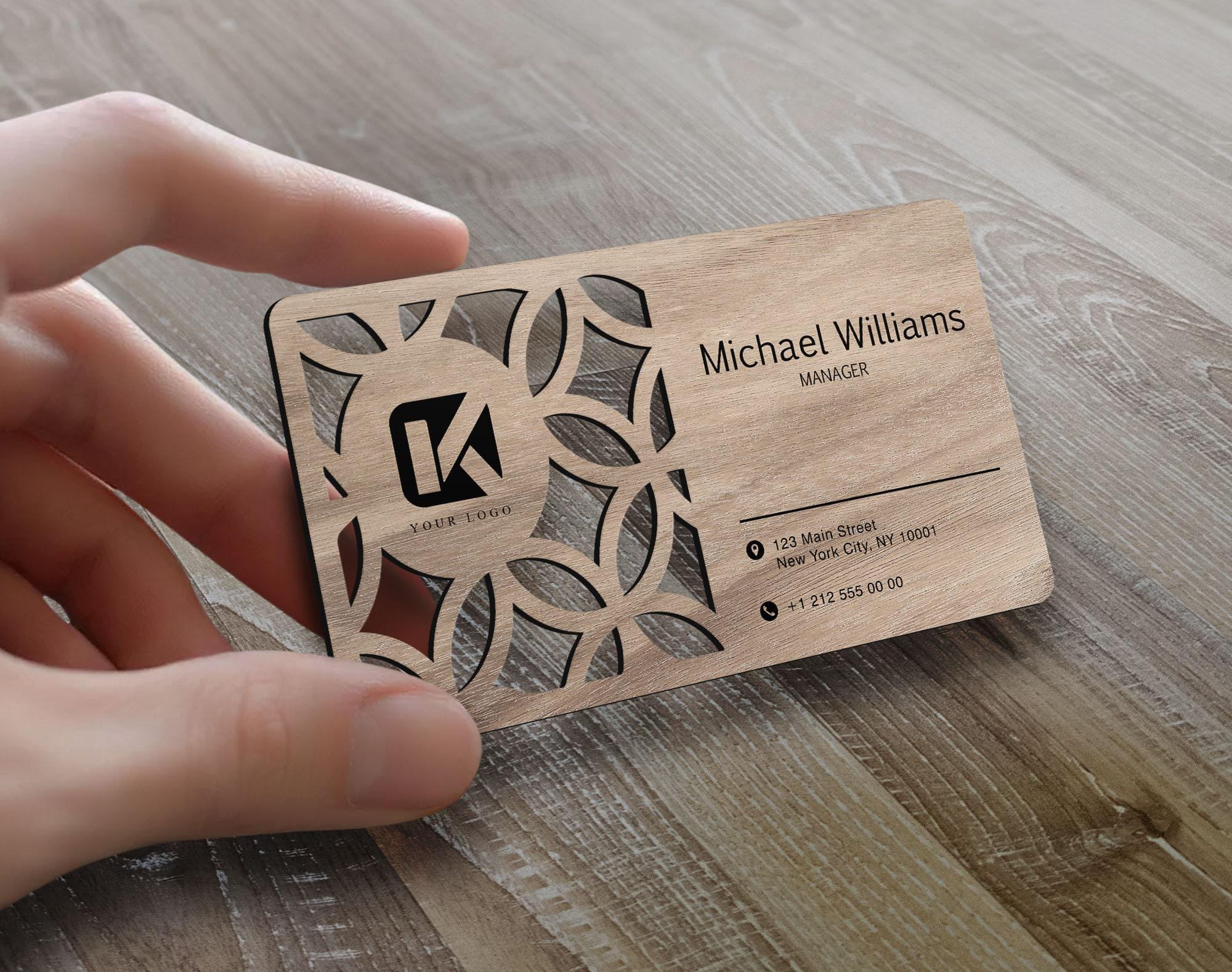 Personalized Wood Laser Cut Business Card, Custom Wooden Business C...
