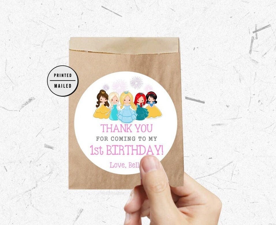 Princess Birthday Party Stickers, Personalized, Favor Stickers, Fav...