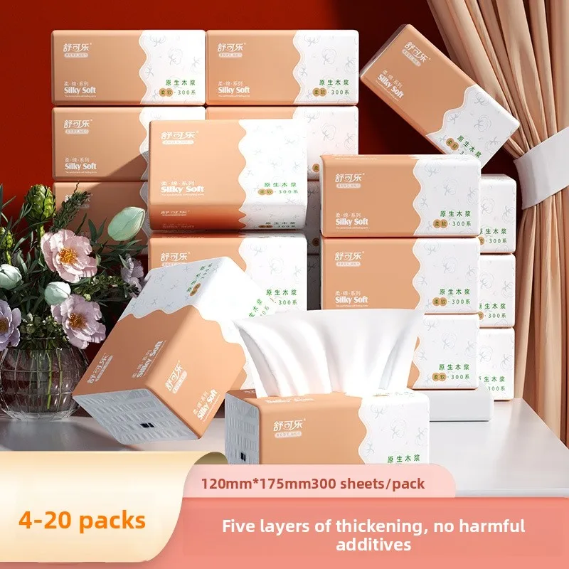 8-20 Packs, 300 Sheets/pack, 5-layer Thickening, 60 Puffs/pack, Household Drawstring Paper Towels, W...