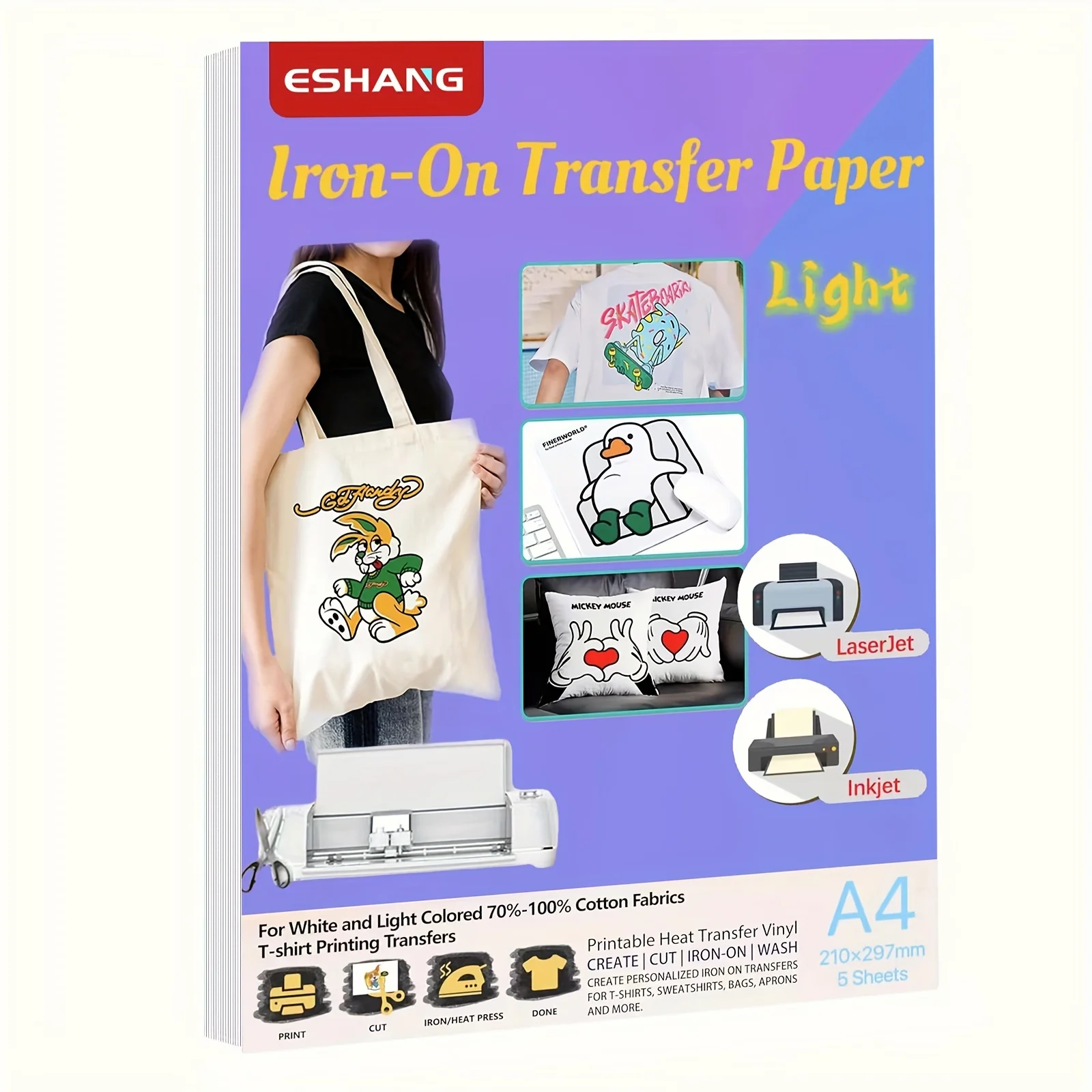 A4 Size Heat Transfer Paper For Light Fabric 5 Sheets For Printable Heat Transfer Vinyl for Inkjet &...
