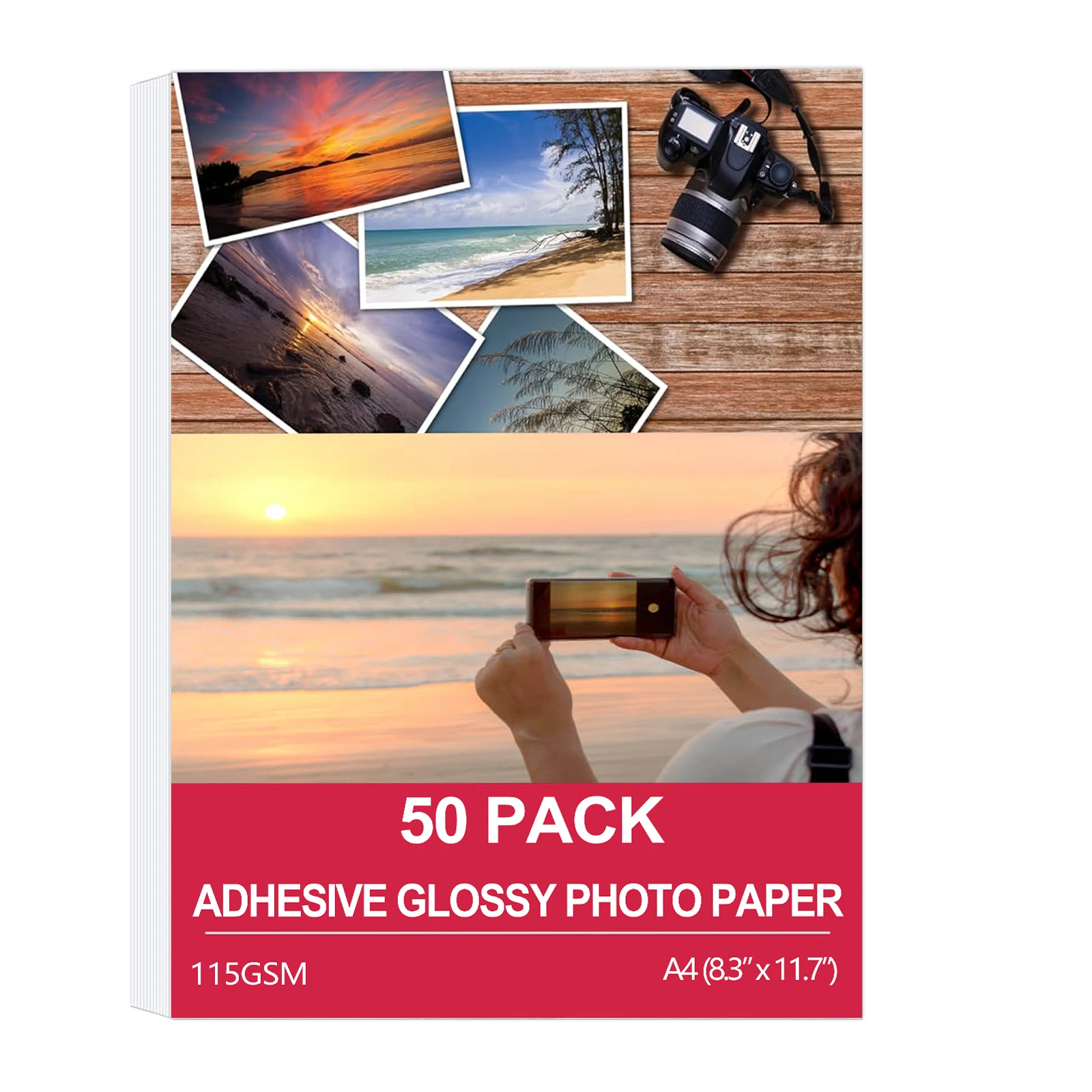 A4 115gsm Self-Adhesive Photo Paper, 50 Sheets, Glossy Sticky Back ...