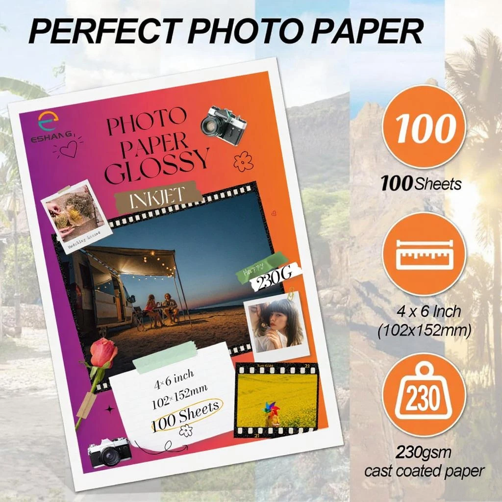100 230g glossy photo paper, 10.2 x 15.2 cm, printer paper, photo printer paper, perfect photo paper...
