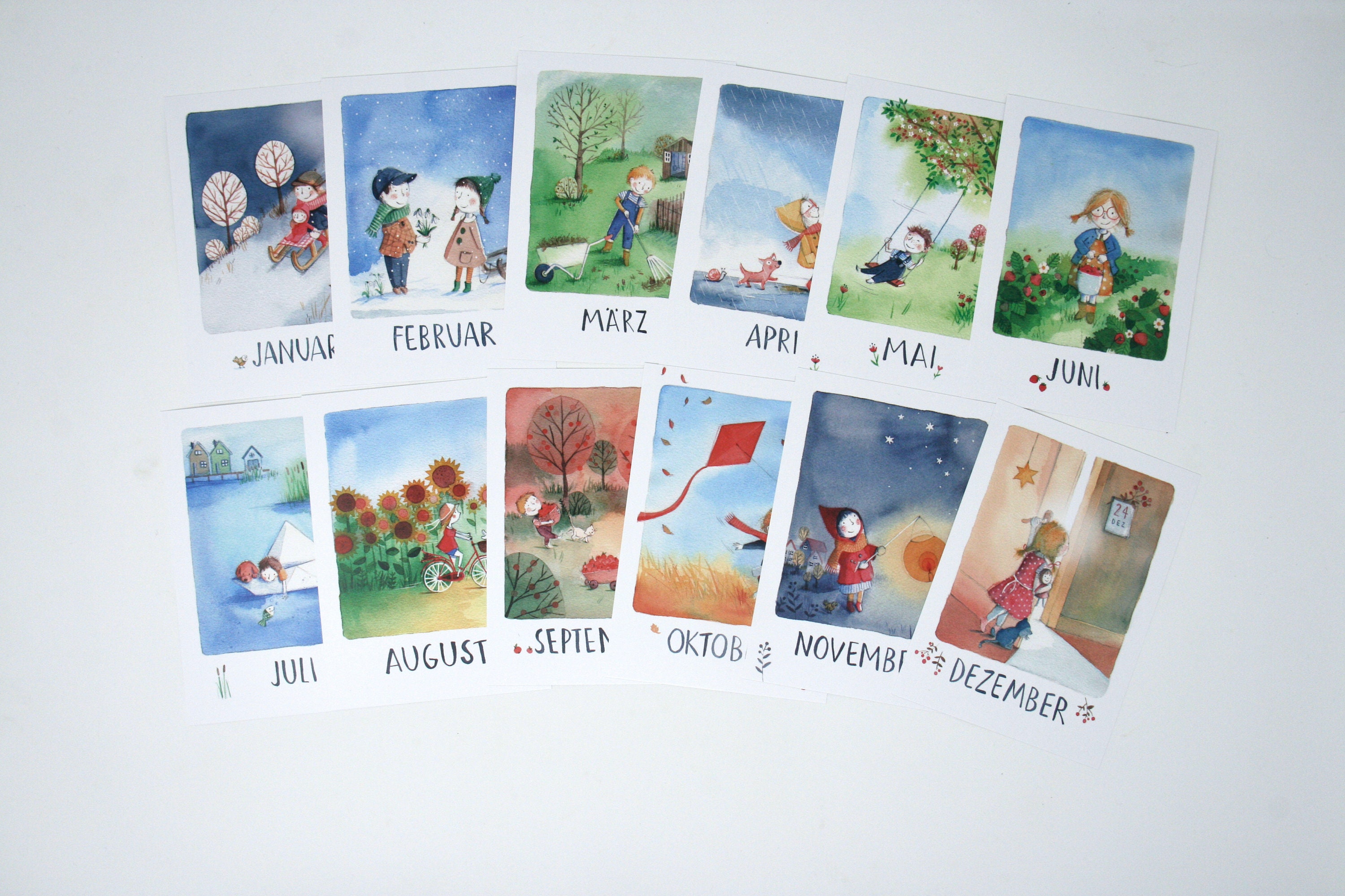 Postcard set by Stefanie Messing / Monthly postcards 12 postcards with beautiful pictures 15 x 11cm ...