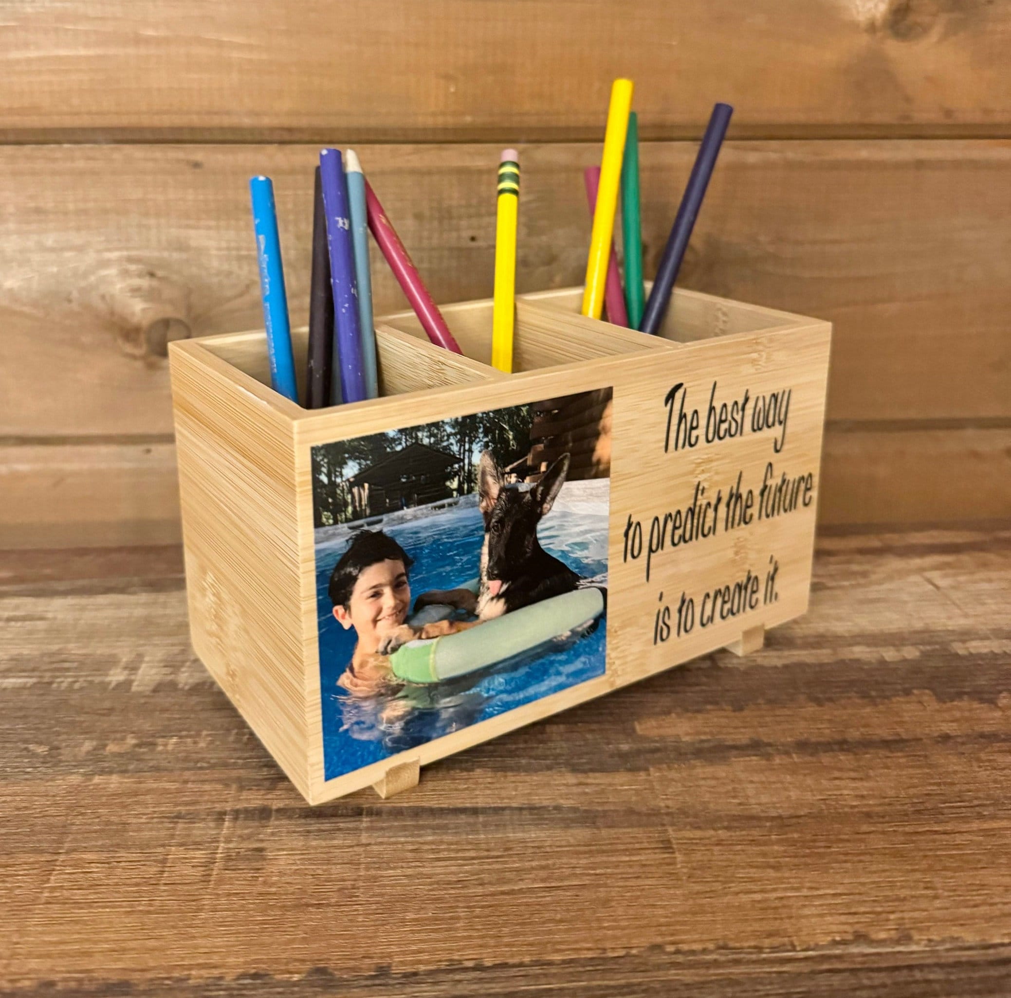"Custom Picture Pencil Box Gift Back to School Gift Picture on Wood Desk Organizer School Suppl...