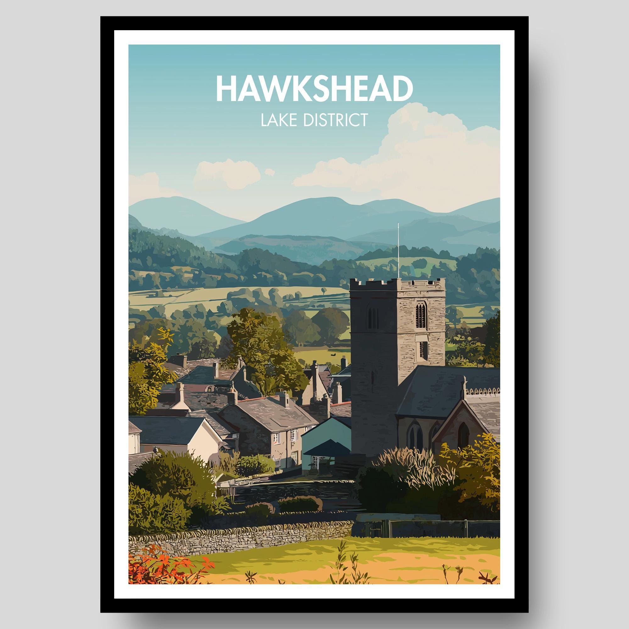Hawkshead Poster - Lake District Poster - National Park Poster - Ha...
