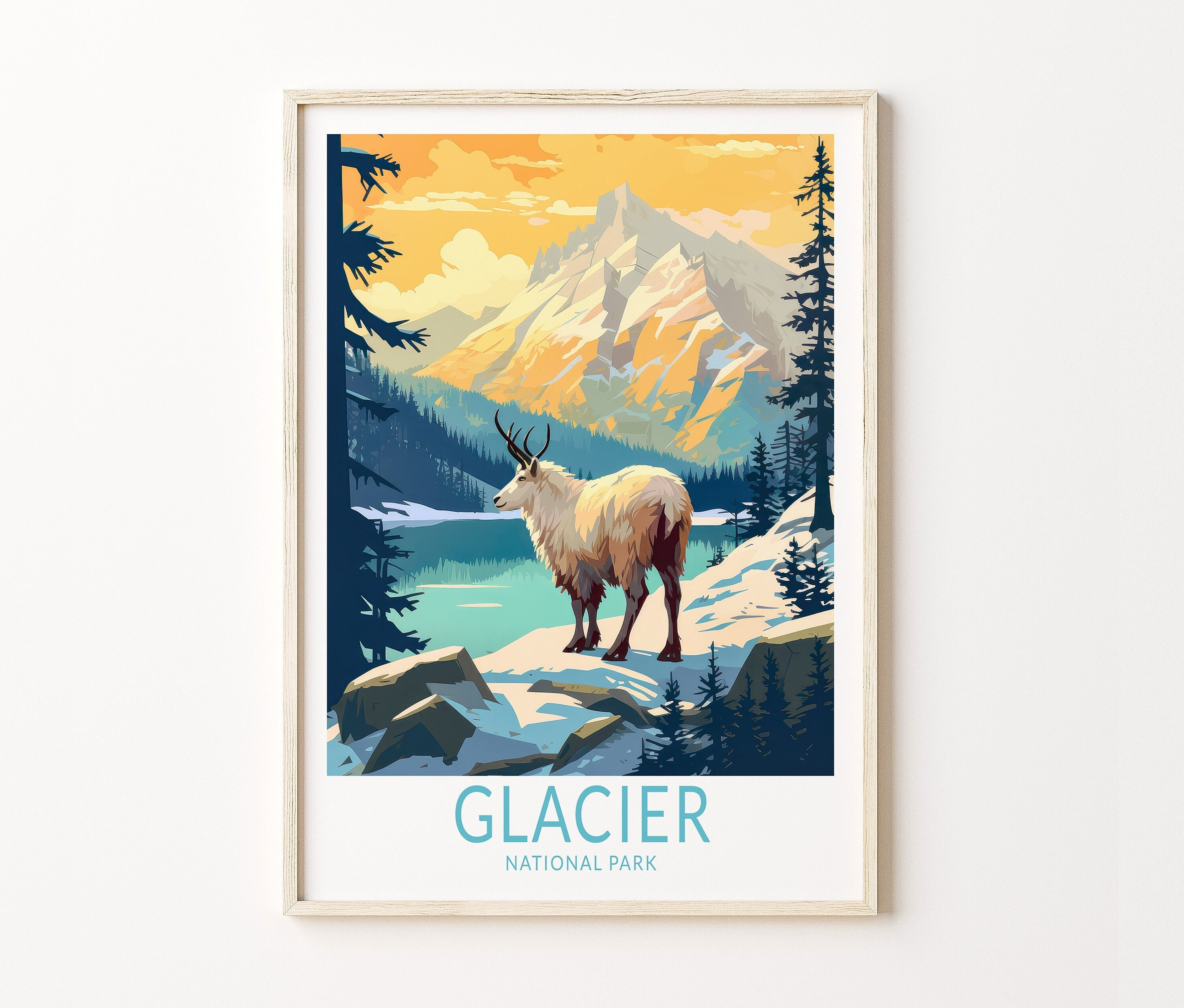 Glacier National Park Travel Poster, Glacier Montana Poster, Nation...