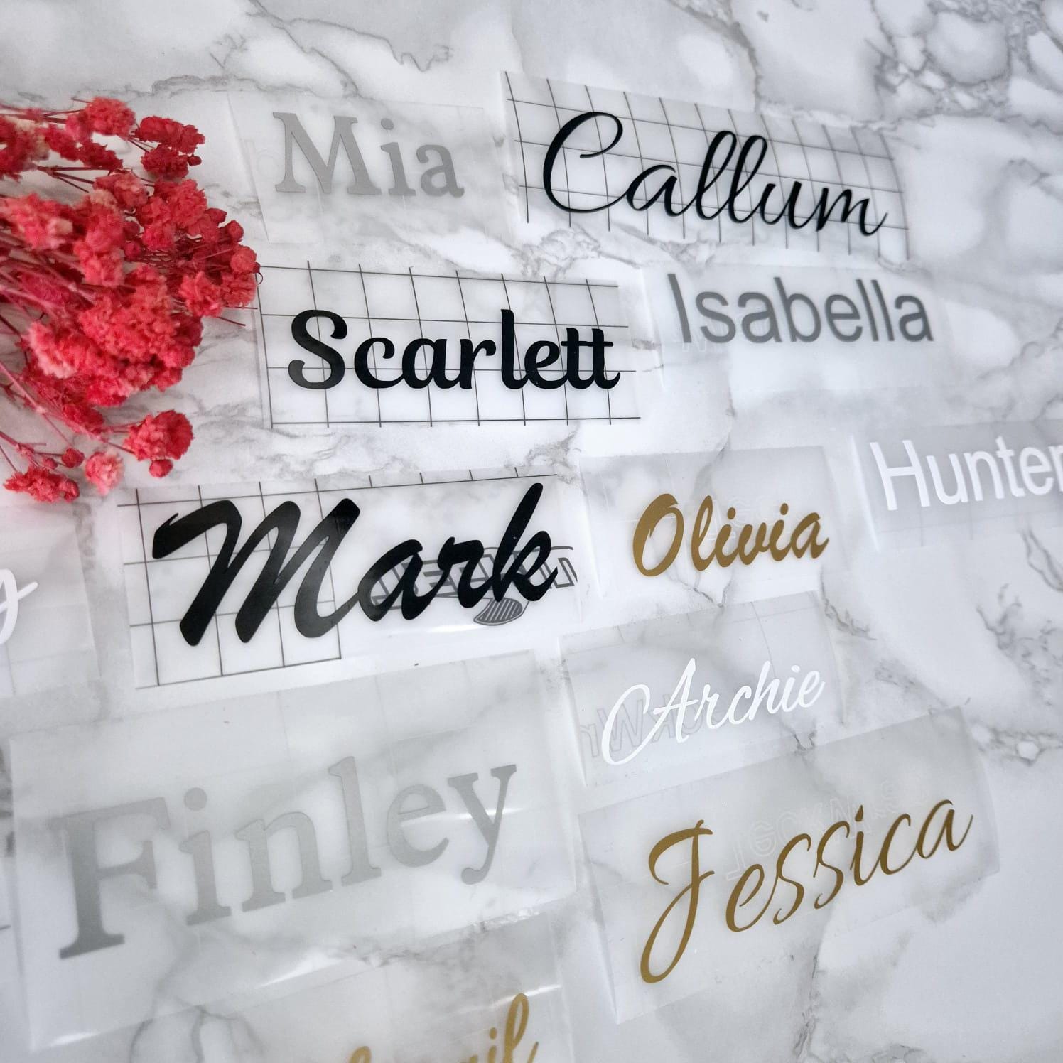 Custom Name Decal, Personalised Stick on Transfer, Sticky vinyl lab...