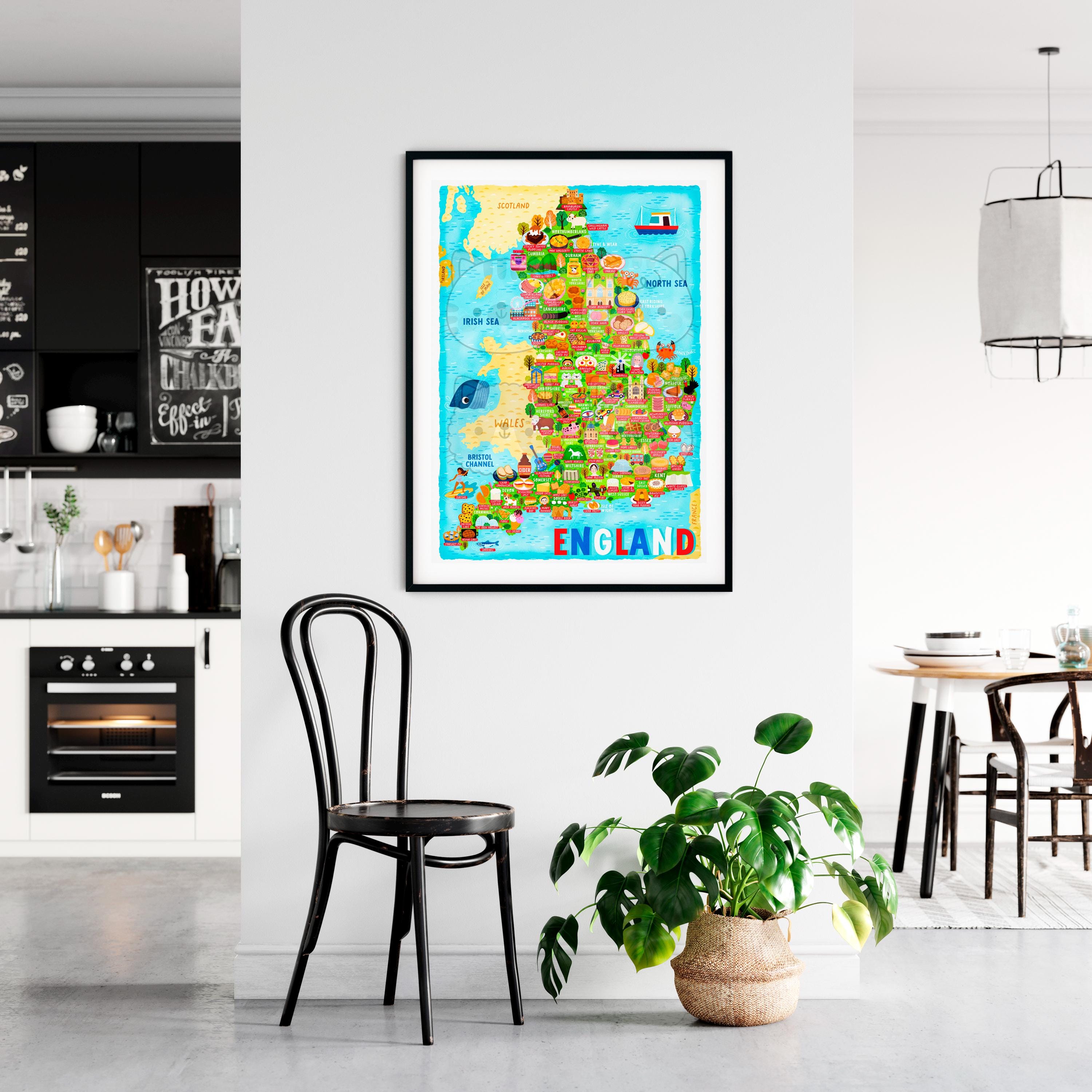 England Map Poster - England Map - Map of England - Illustrated Eng...