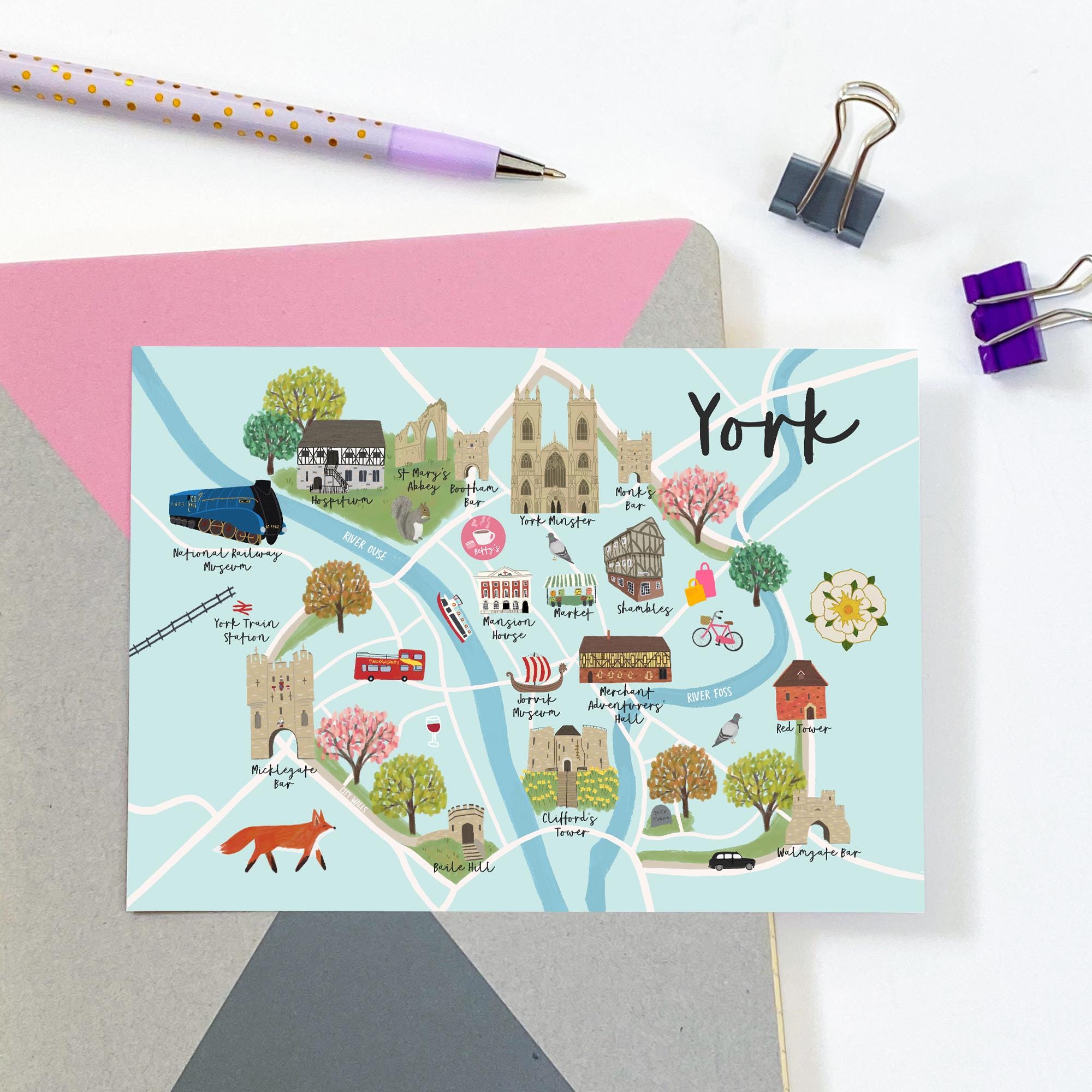 York Map Postcard - York Map Illustration - York Art Print - York E...