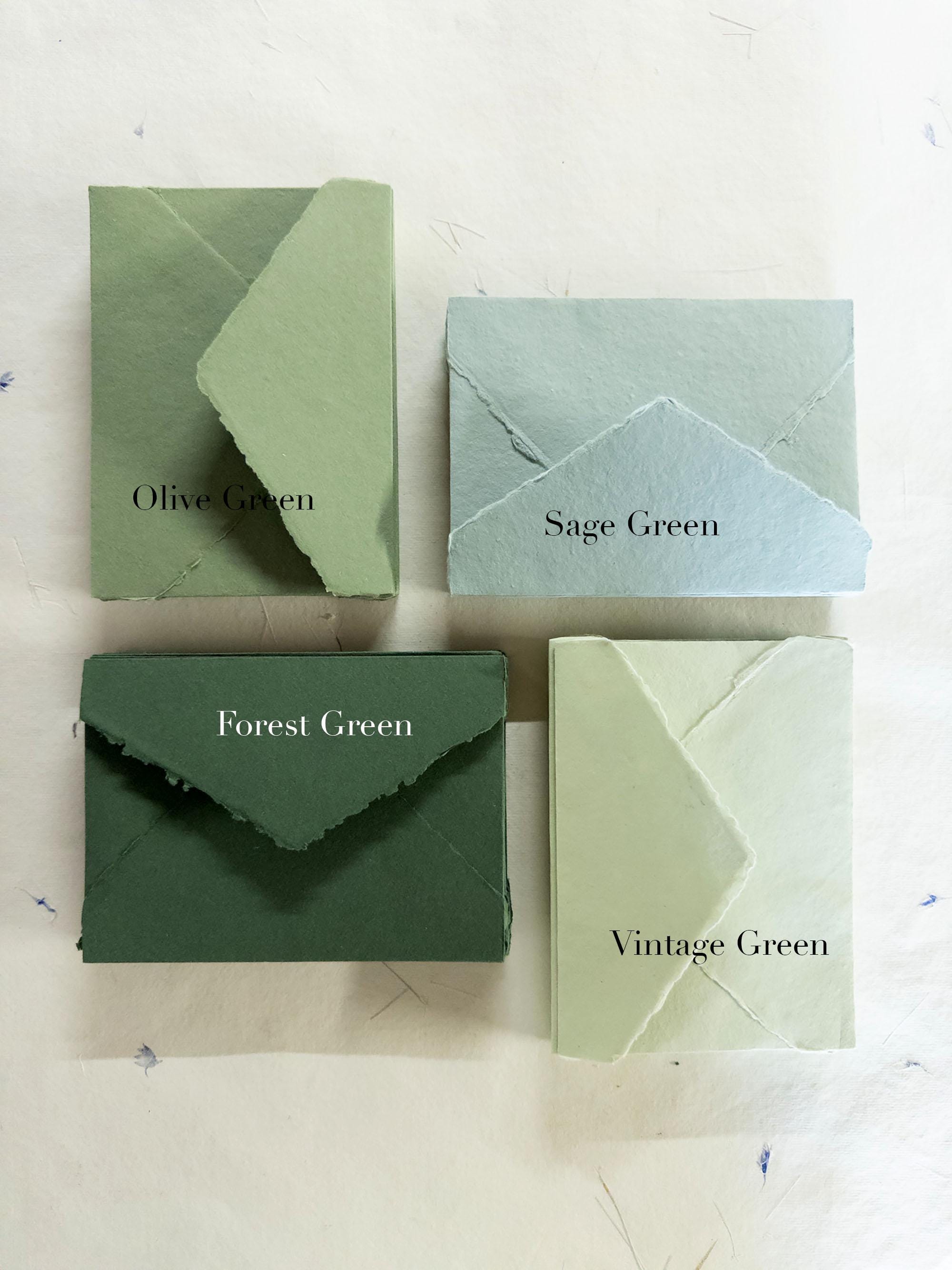 Green shade, Handmade Deckle Edge Envelop, Handmade Cotton Rag Enve...