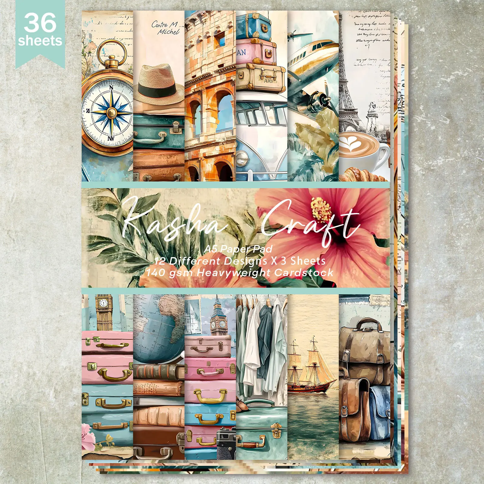 36 Sheets A5 (Roaming The World Equipment) Clipping Thin Paper For Bullet Diary, Junk Magazine, Gree...