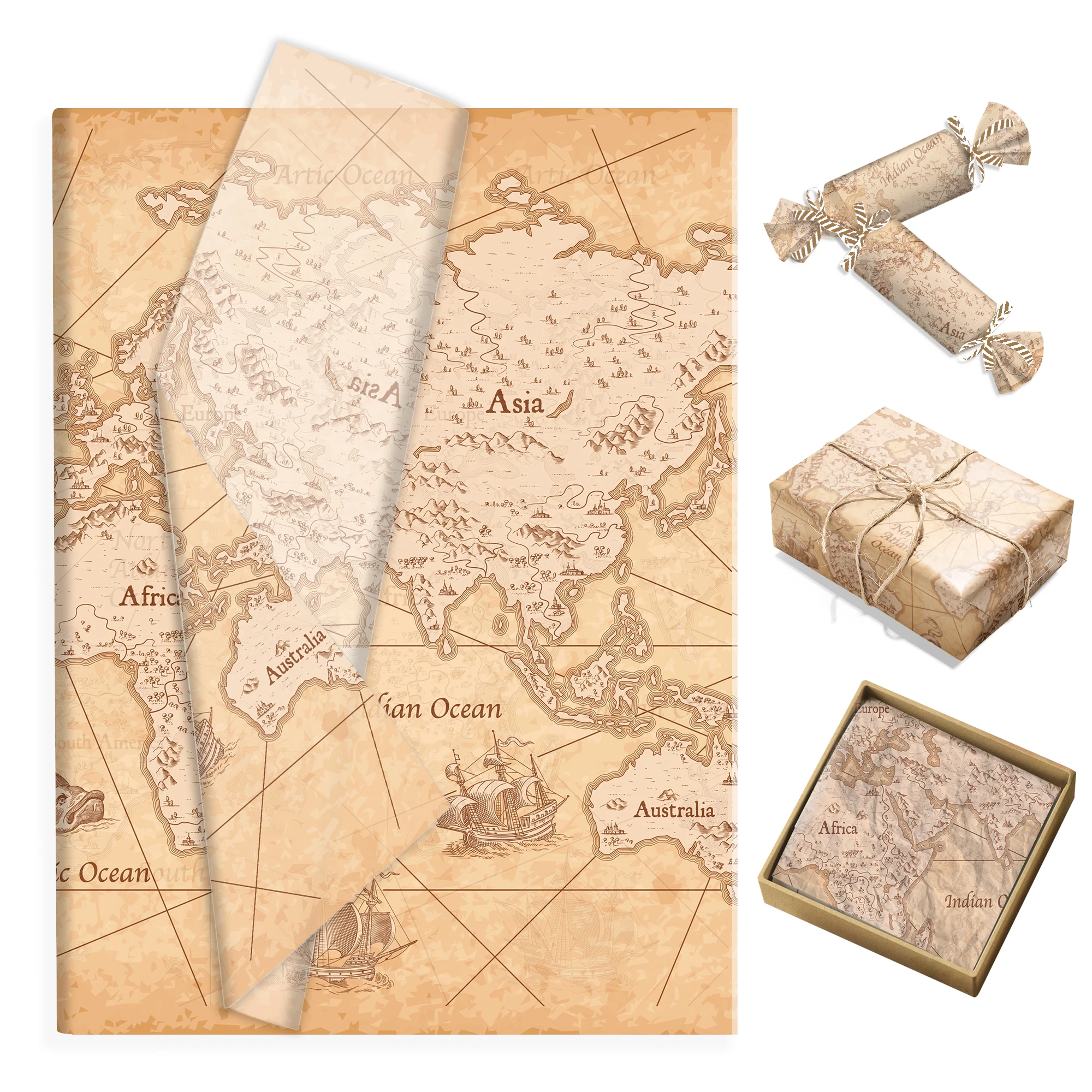 15/35pcs World Map Tissue Paper,Gift Box Wrapping Paper For Birthda...