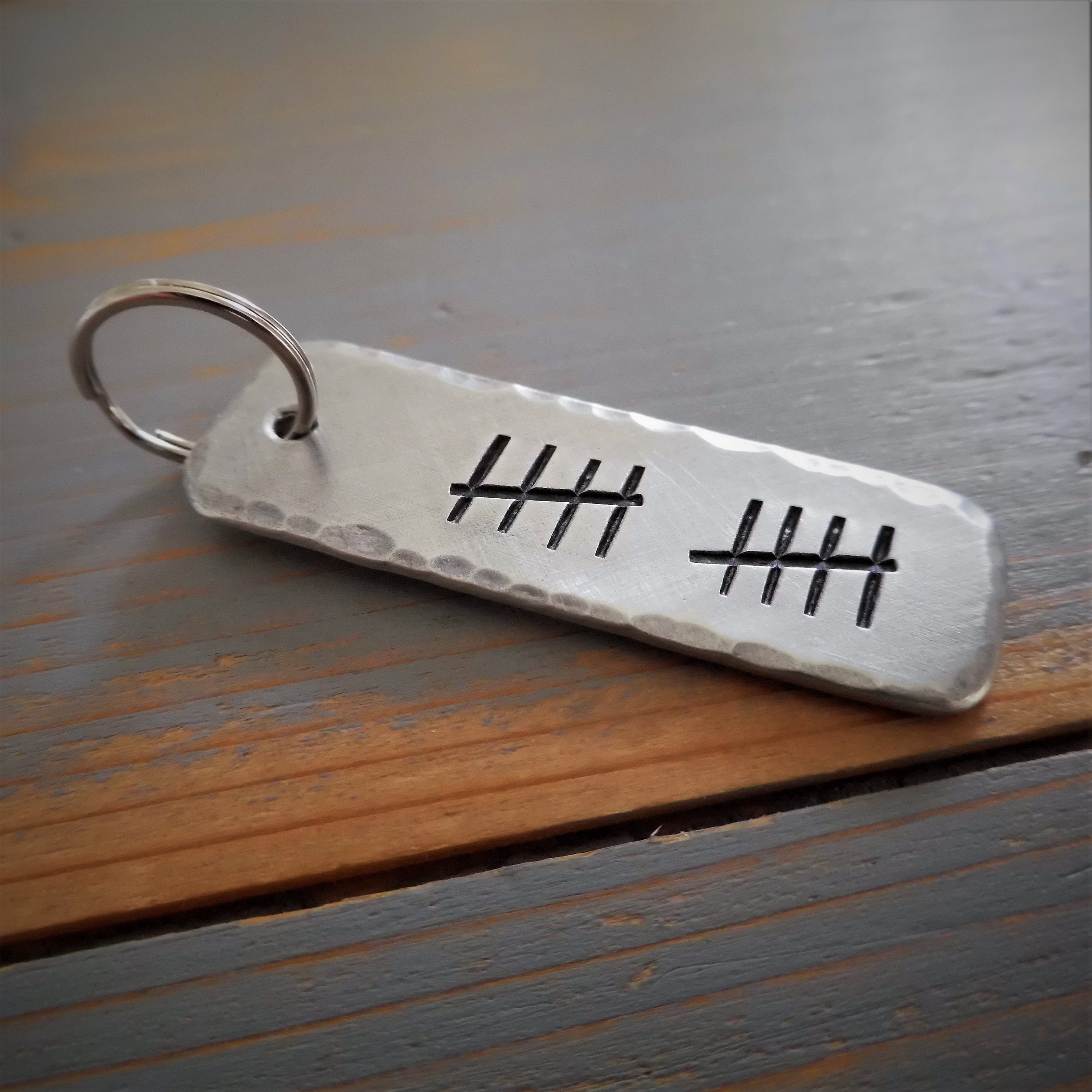 10 Year Tally Mark - simple, yet beautiful hand-stamped pewter bag tag, keyring charm or zipper tag....