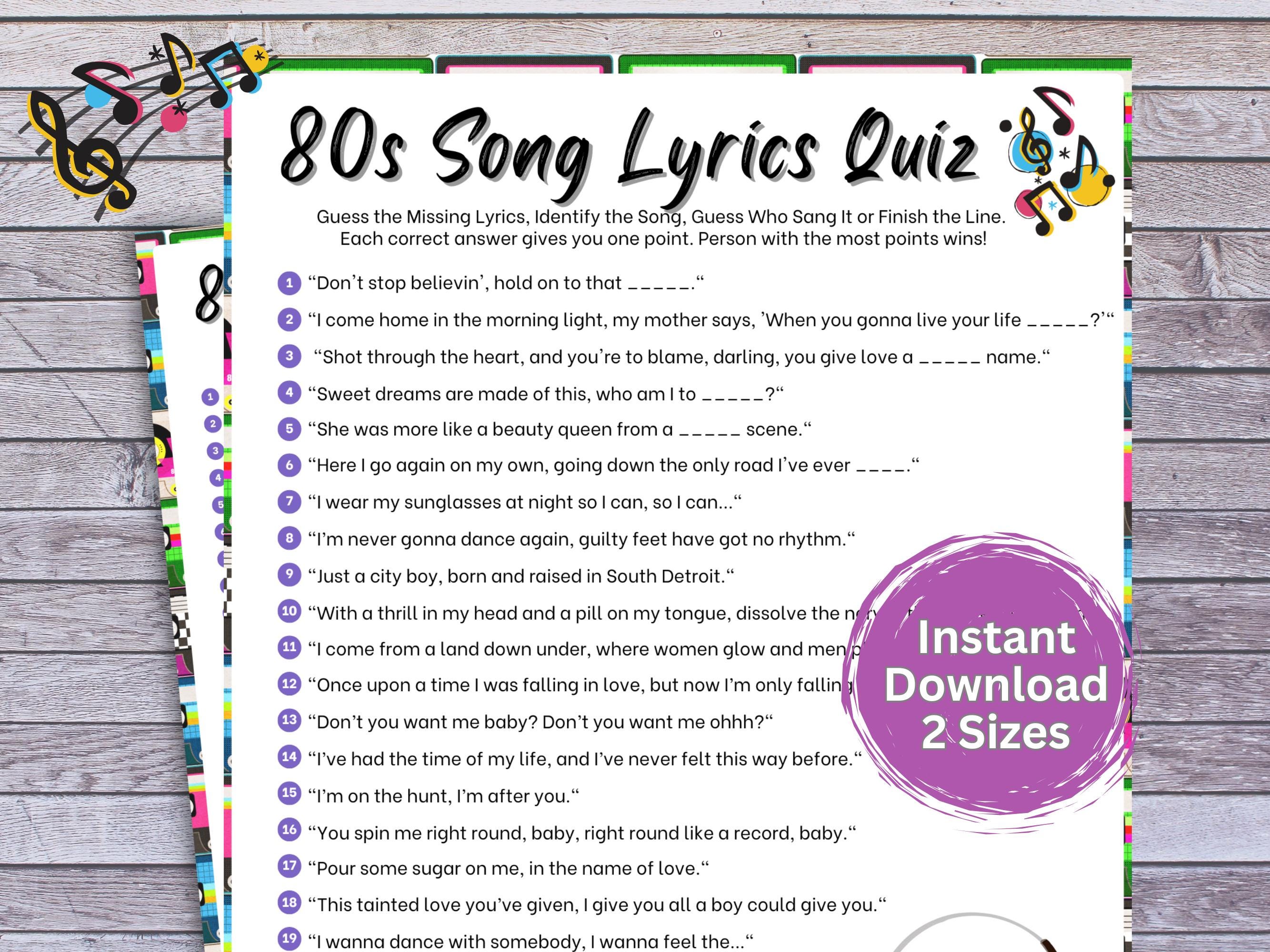 1980s Finish The Lyrics Quiz, 80s Trivia Game, Name That Tune, Name...