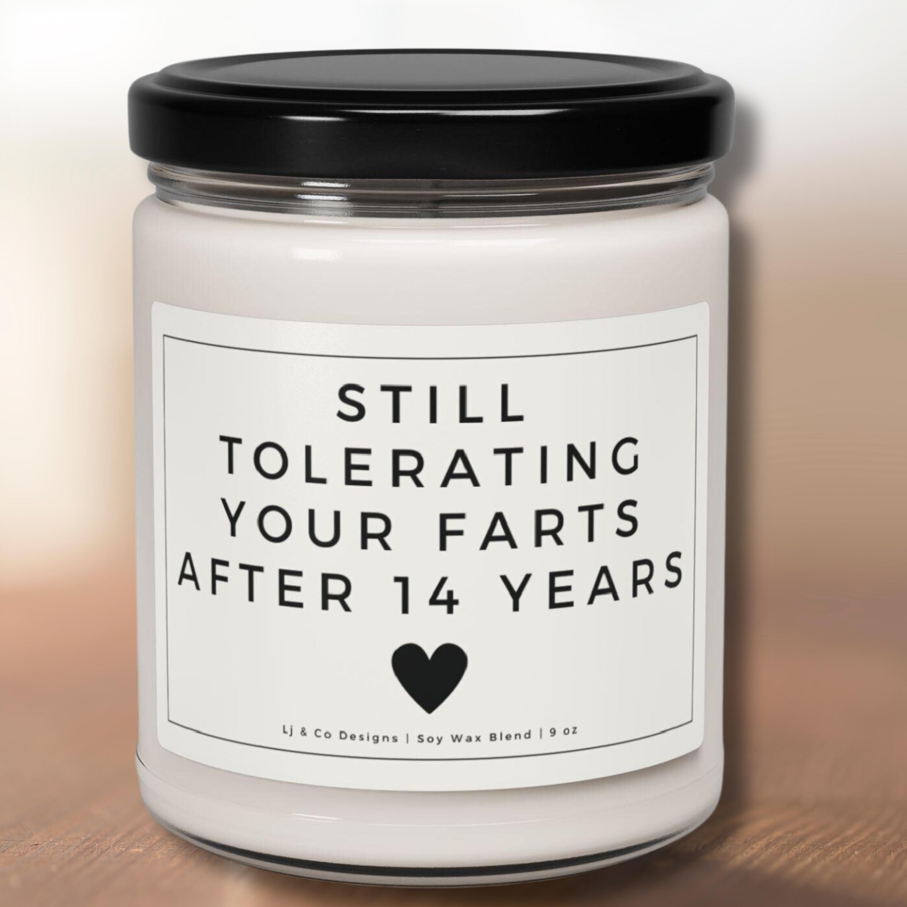 "Still Tolerating Your Farts - This cute candle is customizable for your anniversary year! Our ...