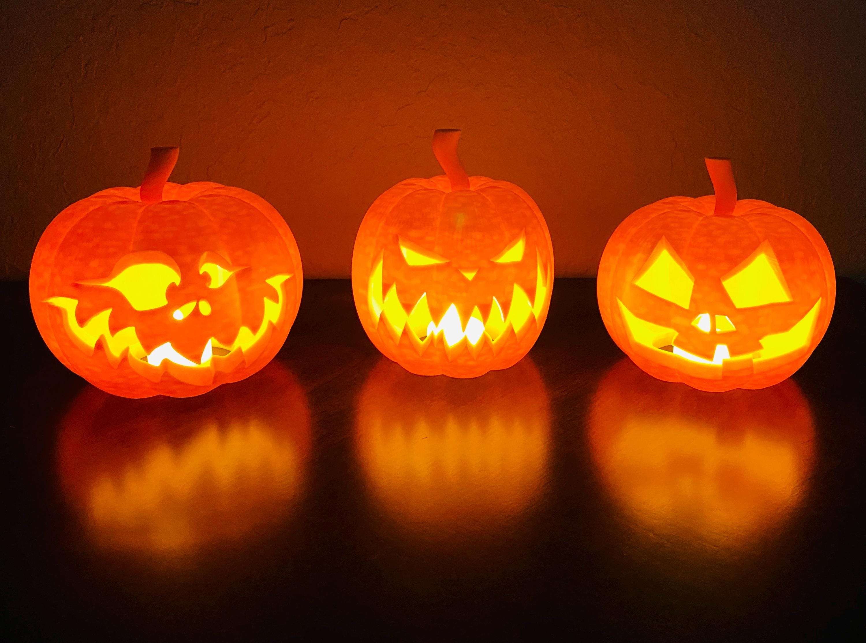 LARGE Halloween Pumpkin Jack-o-Lanterns with light- 3D printed Glow...