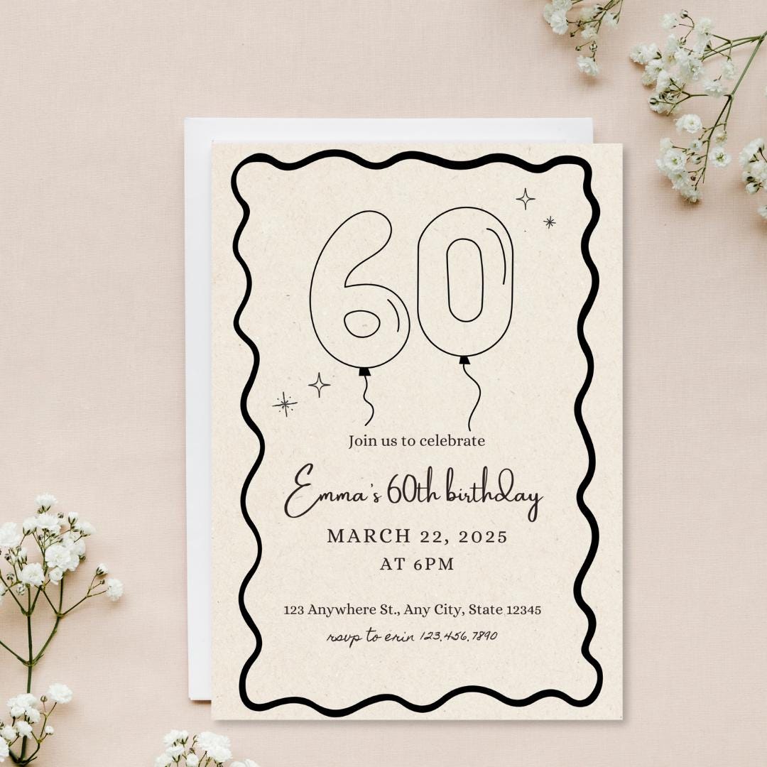 "This digital invitation template is the perfect way to invite guests to a memorable 60th birth...