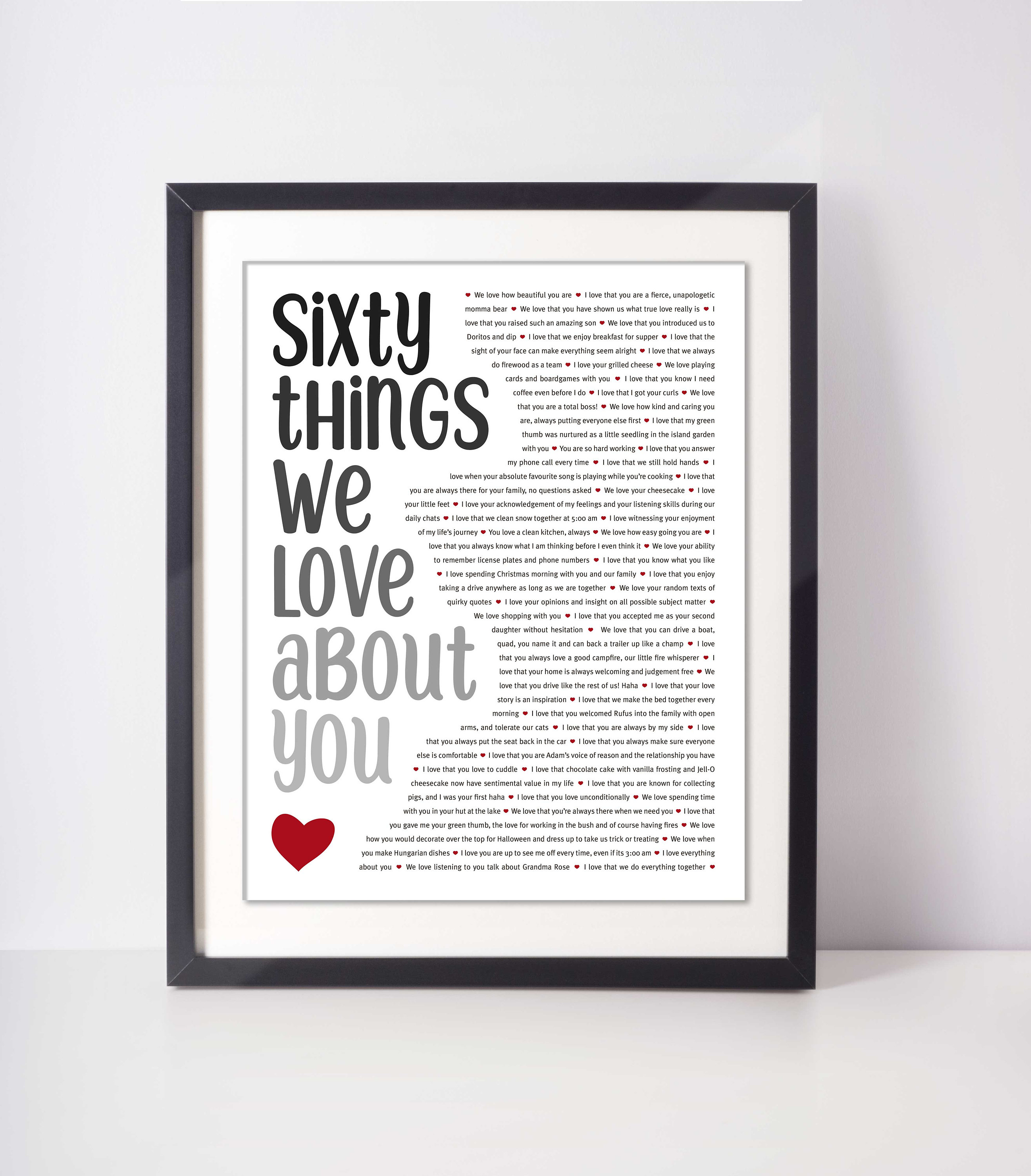 60 THINGS We Love About You; 60th Birthday; Sister 60th; Wife's 60t...