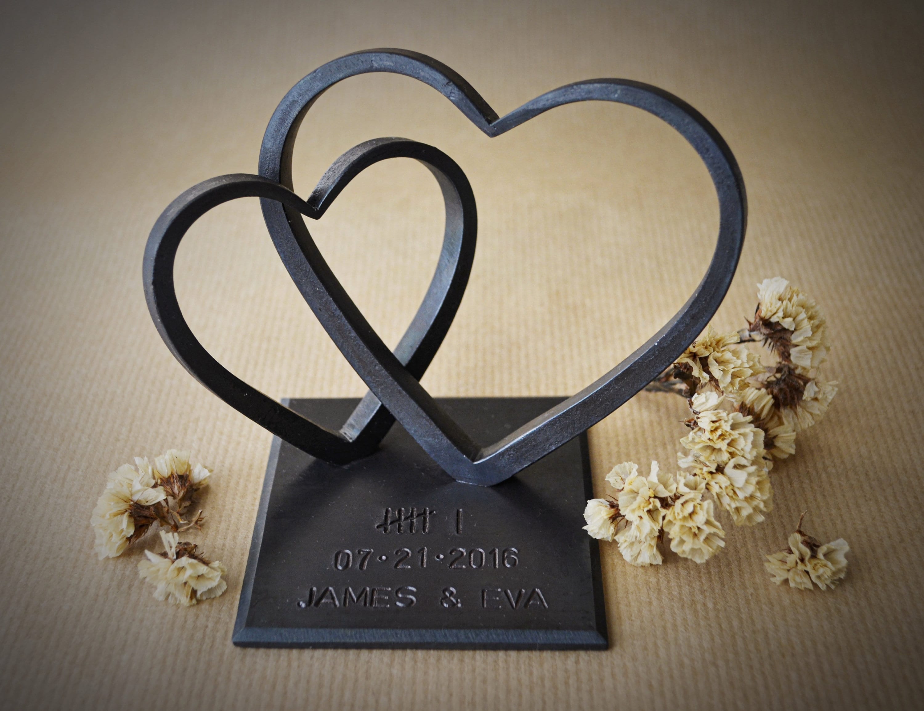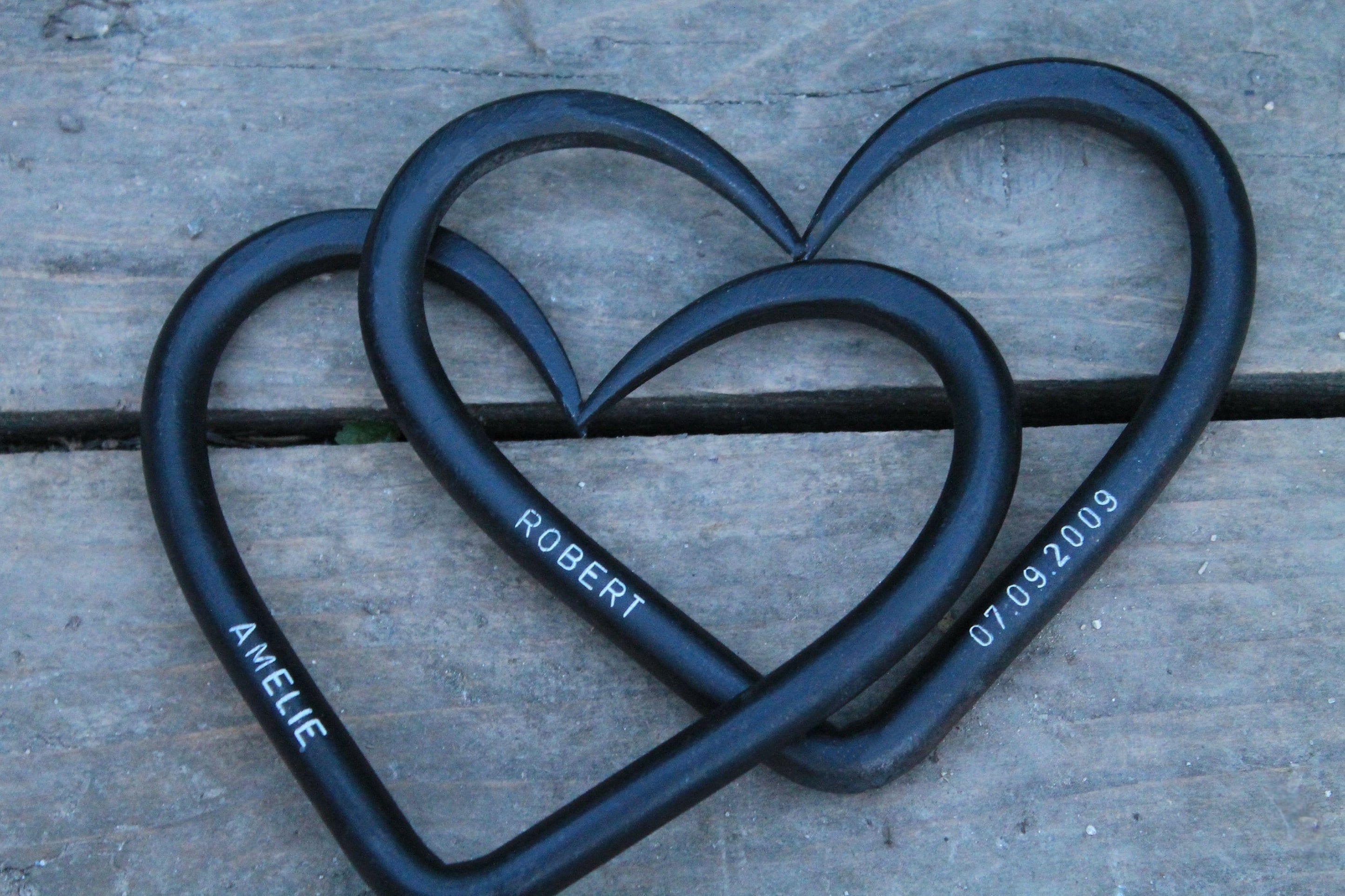 "Personalized Intertwined Iron Hearts of Love - 6th Anniversary Gift These iron hearts of love ...