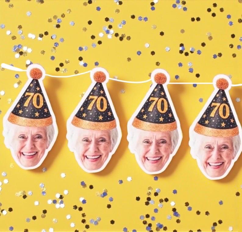 70th Birthday Banner | Customized with face | 70th Birthday Decor |...