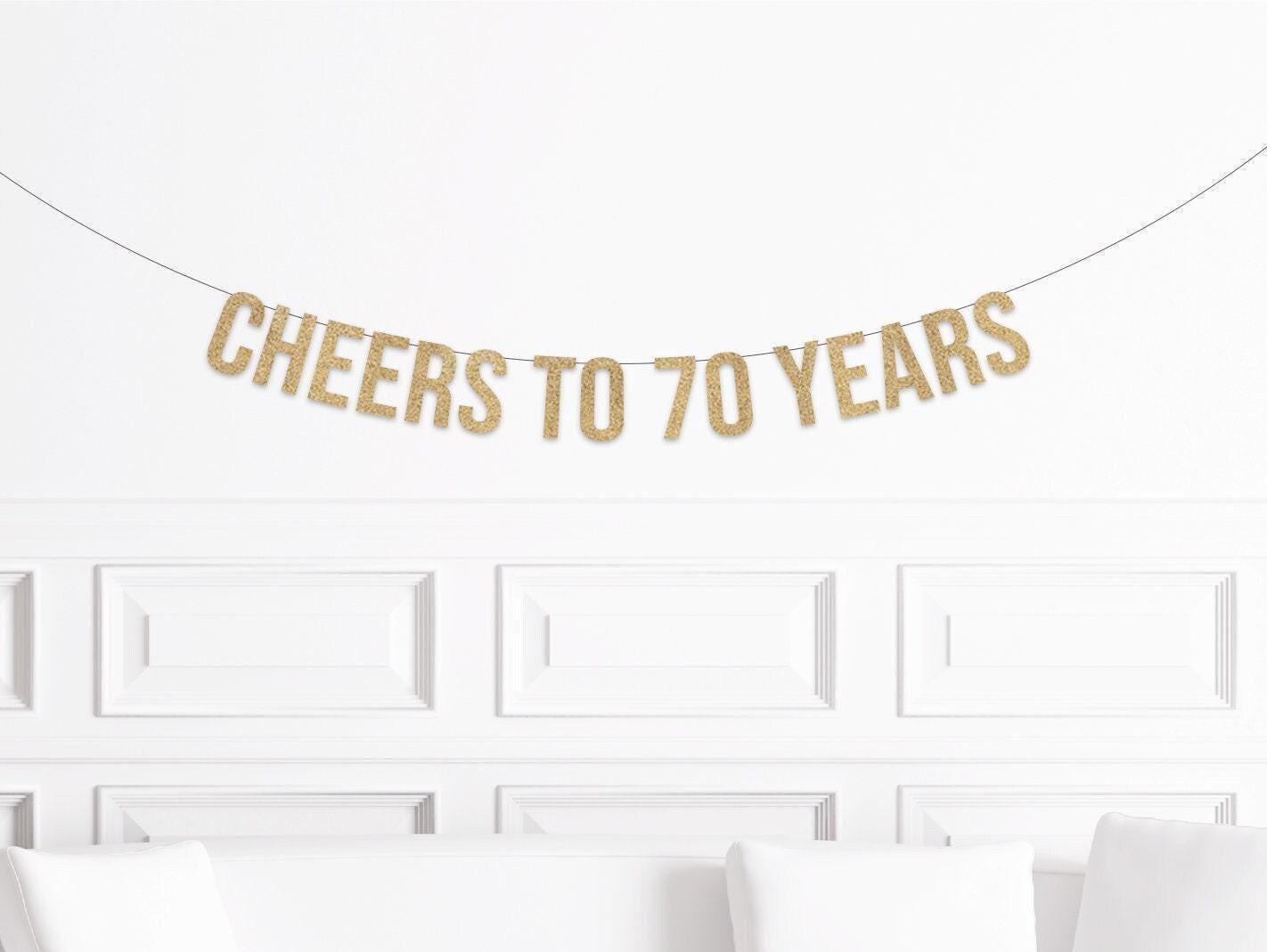 Cheers to 70 Years Banner, 70th Birthday Decorations, Seventieth Bi...