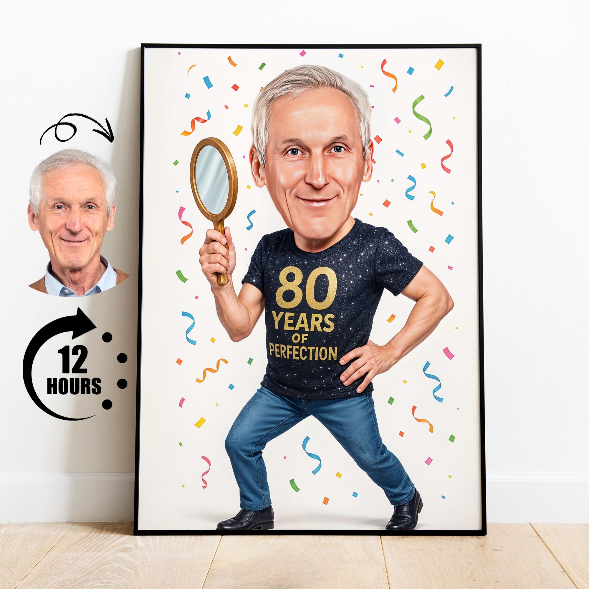 Celebrate 80 years of legendary charm with this hilarious custom caricature! Whether it's your dad, ...