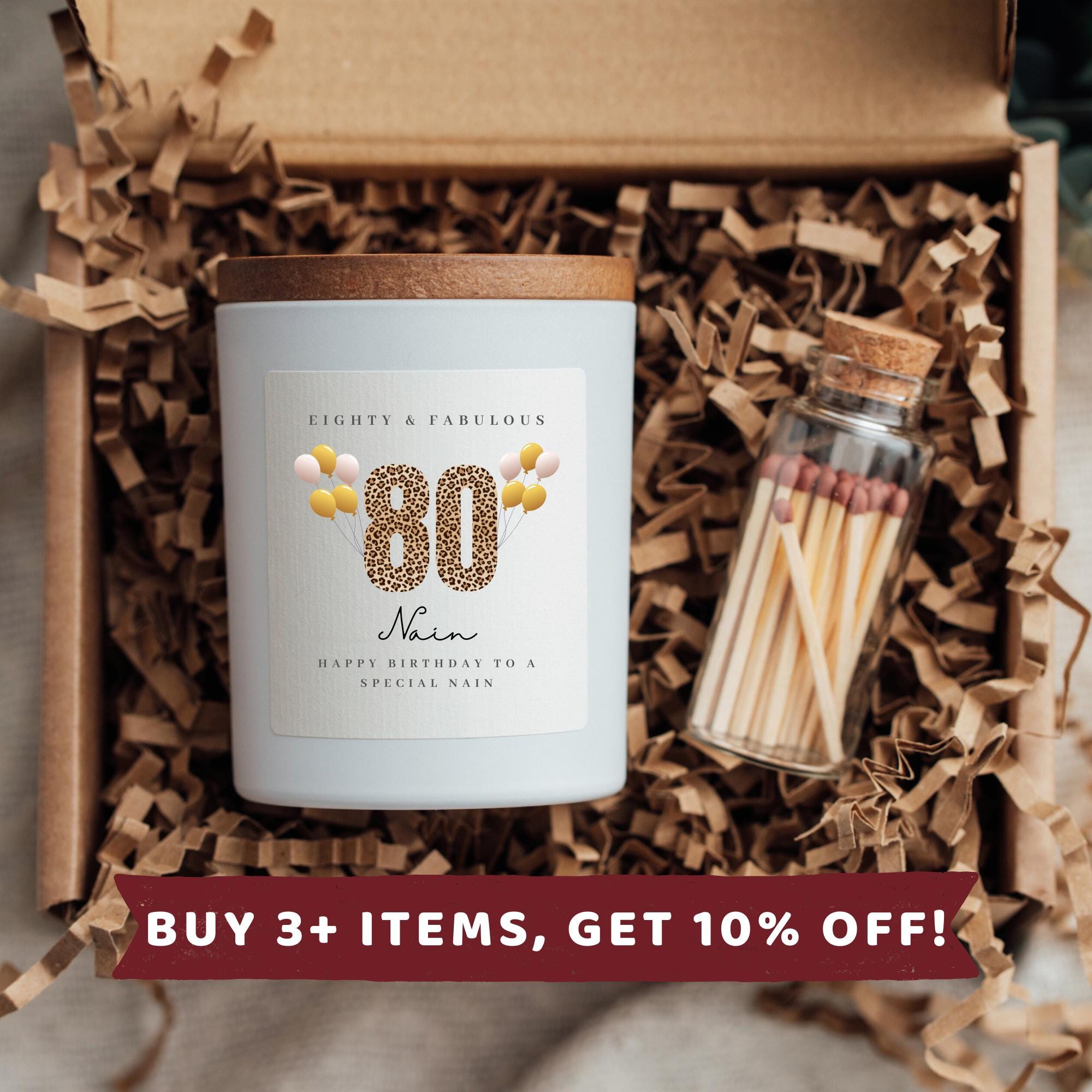 Personalised 80th Birthday Candle Gift for a Nain This personalised 80th birthday candle gift for a ...