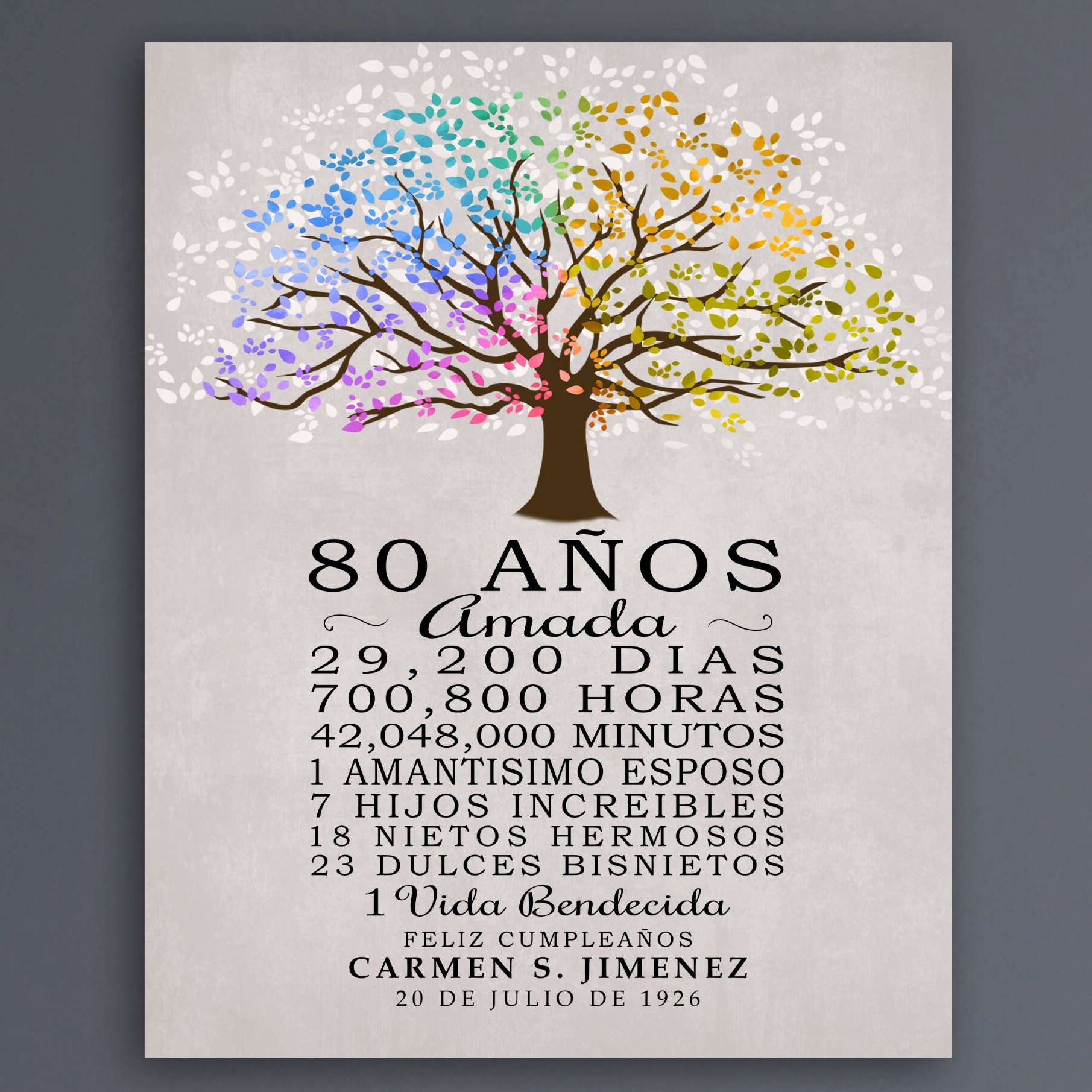 80th Birthday Gift Mom SPANISH, Personalized Keepsake Gift Idea, Sp...