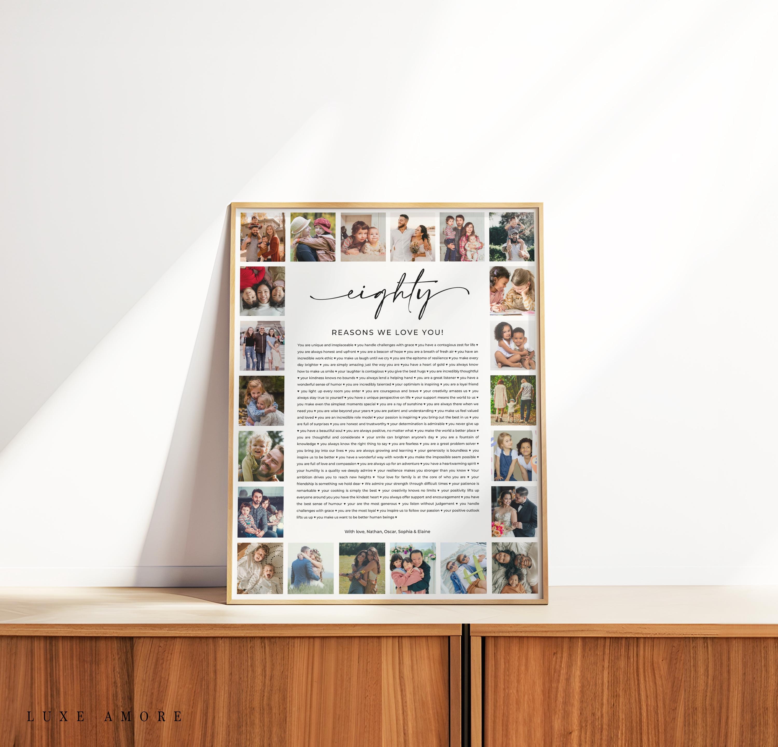 "80 Reasons We Love You Printable, Photo 80th Birthday Sign, 80th Birthday Poster, Mom's 80th B...