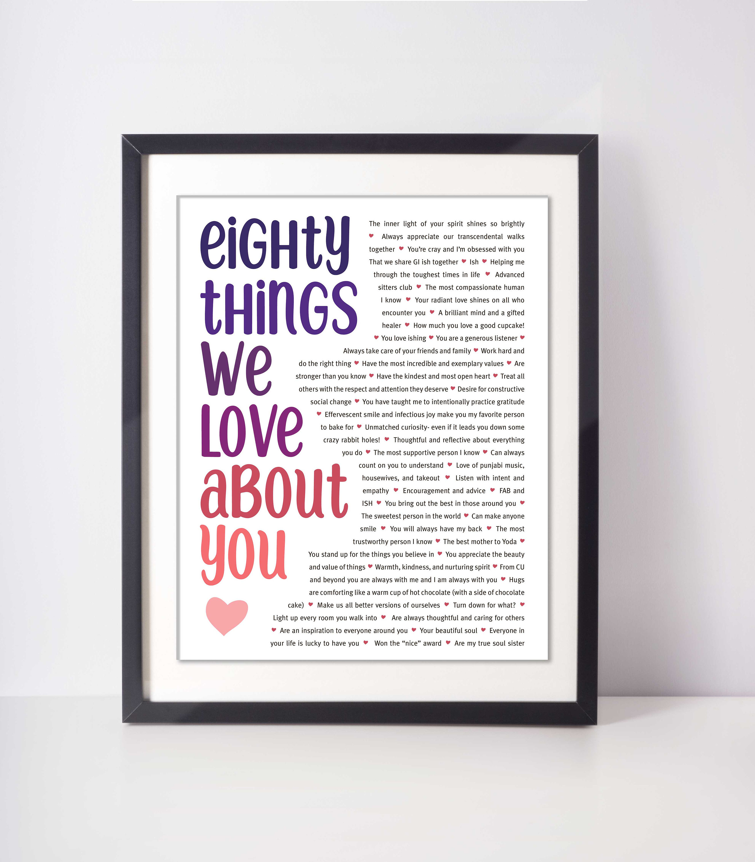 80 Things We Love About You Personalized Printable, 80th Birthday G...