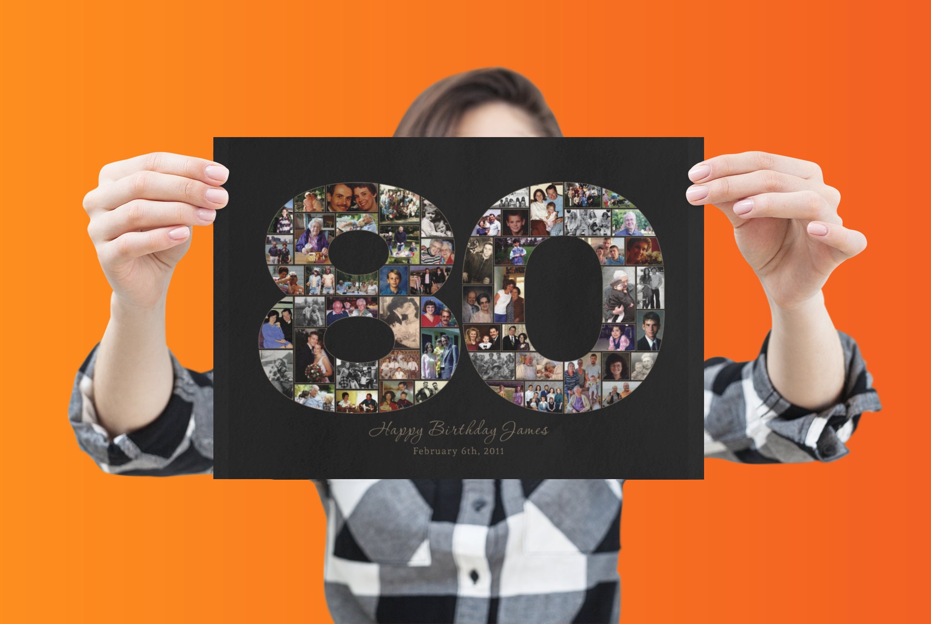 "Celebrate a lifetime of memories with this 80th Birthday Photo Collage Template, the perfect 8...
