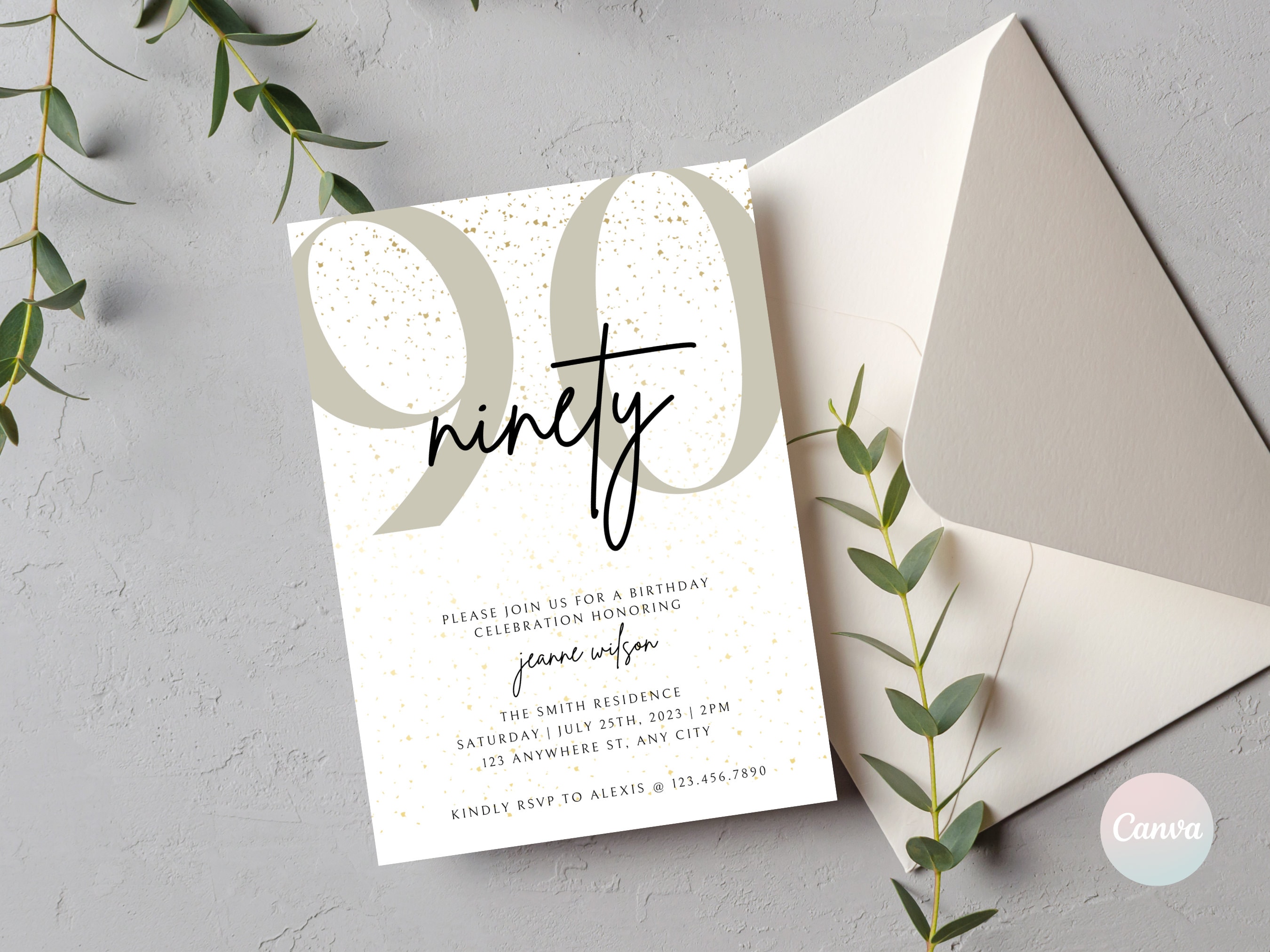 90th Birthday Invitation, 90th Invite Template, Digital 90th Birthd...