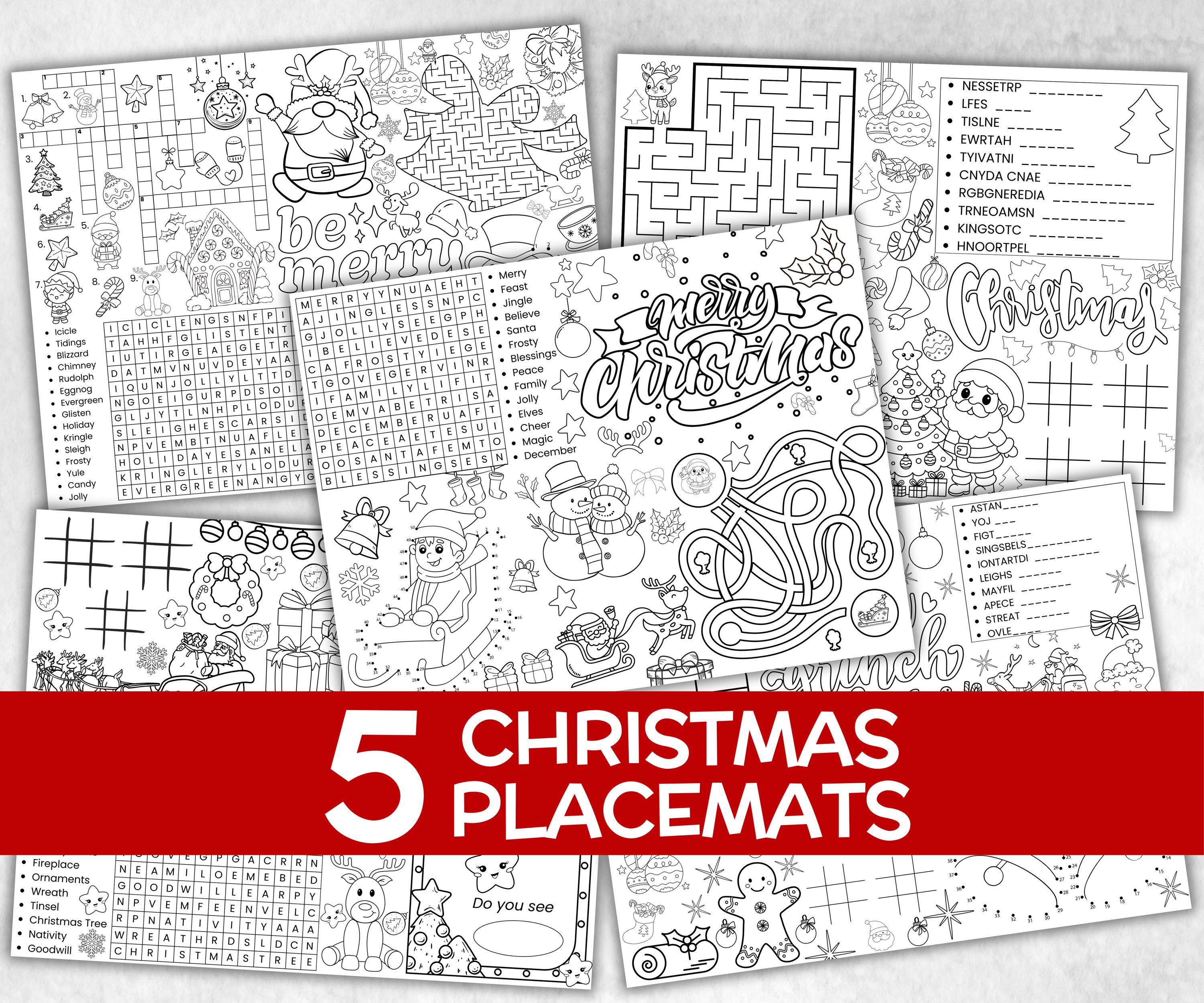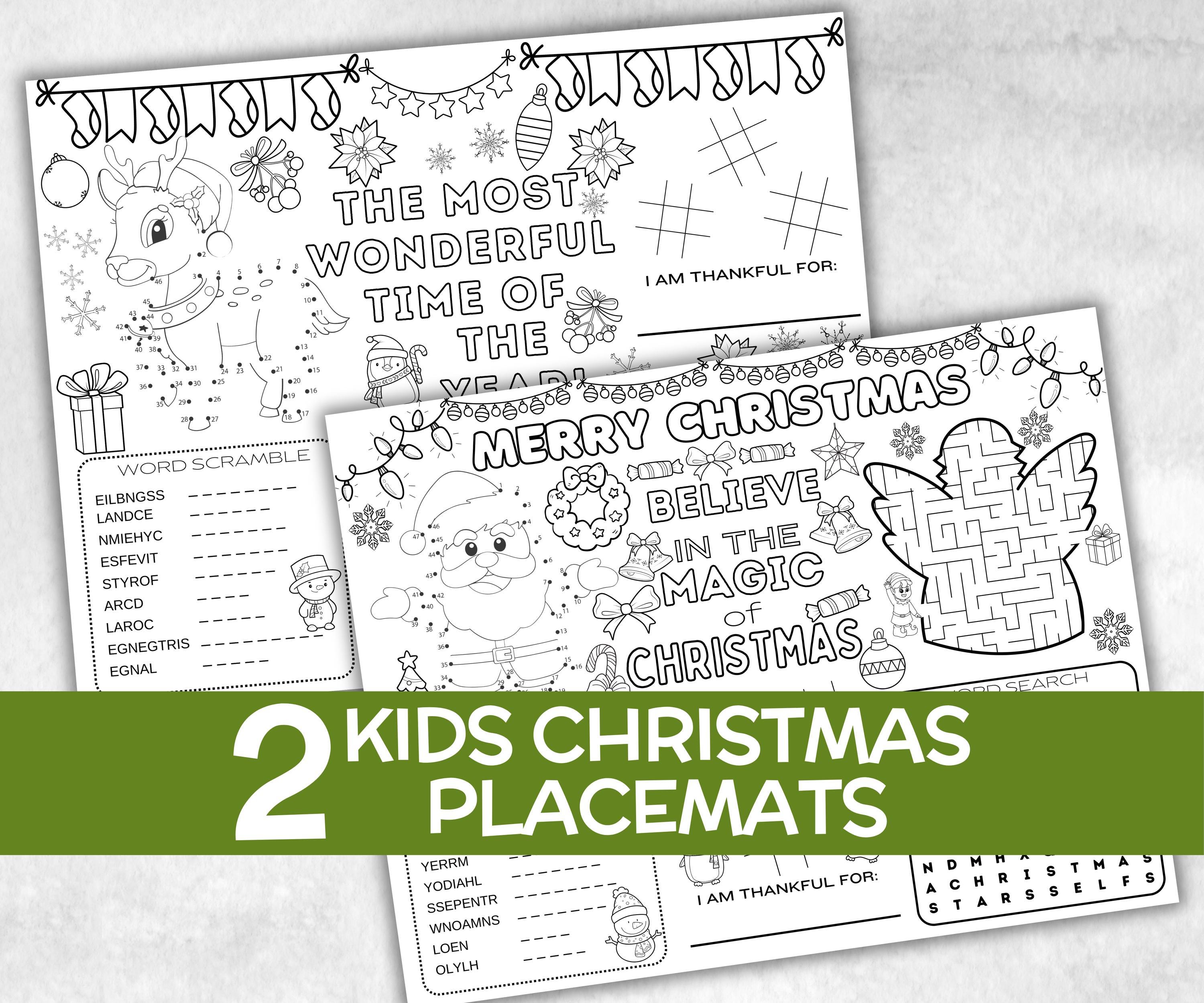 Christmas Kids Placemats Bundle, dinner table, table decor, Christm...