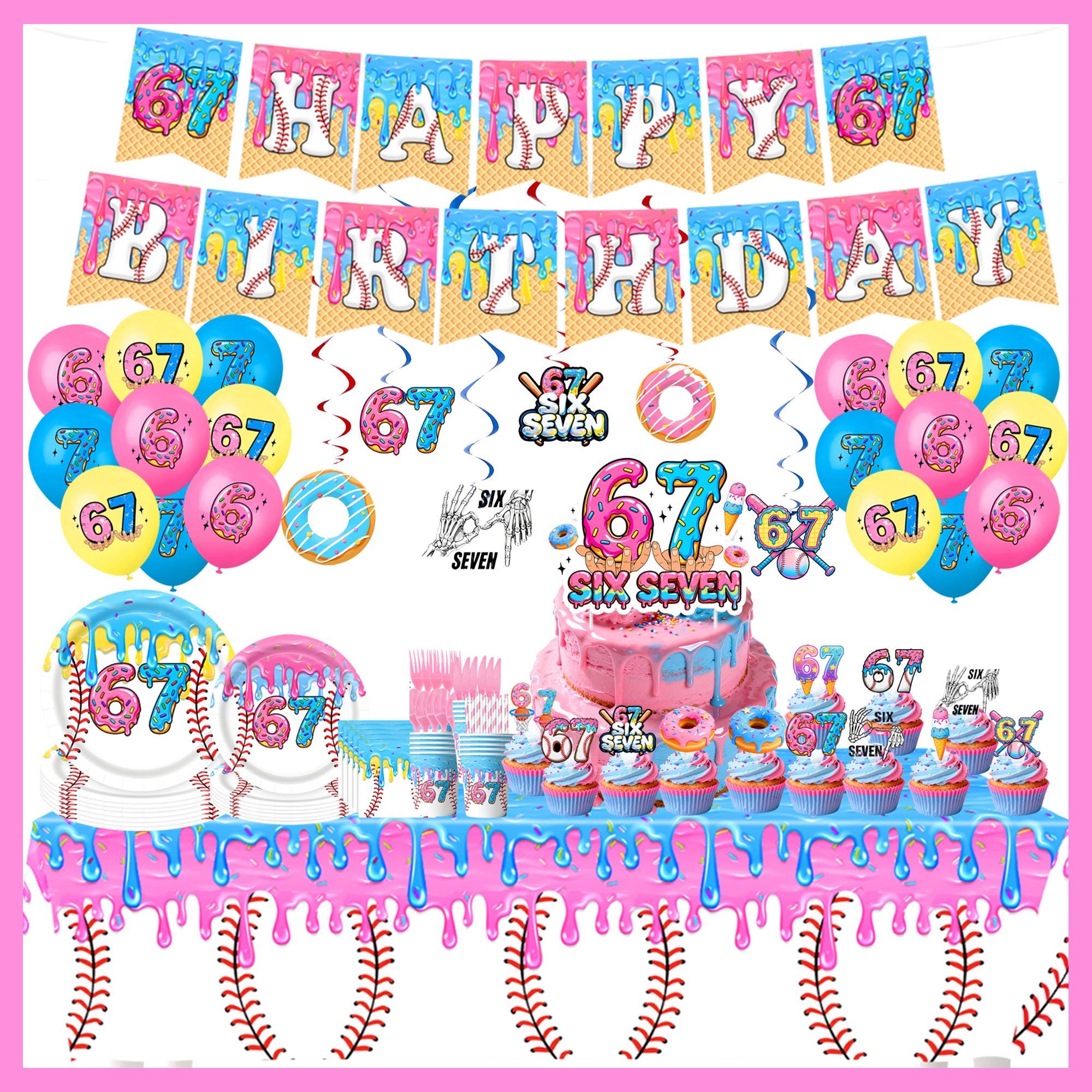 Six Seven Birthday Party Decor-Banner,Cake Topper,Balloon,Tableclot...