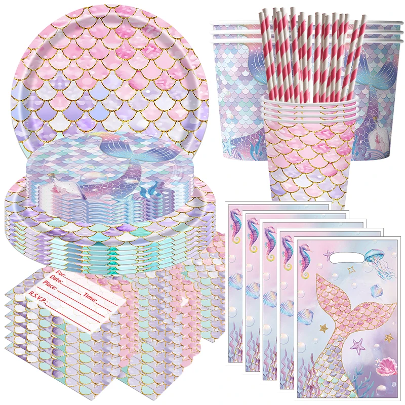 Mermaid-themed Party Decorations Set Paper Plate Paper Cup Cake Sta...