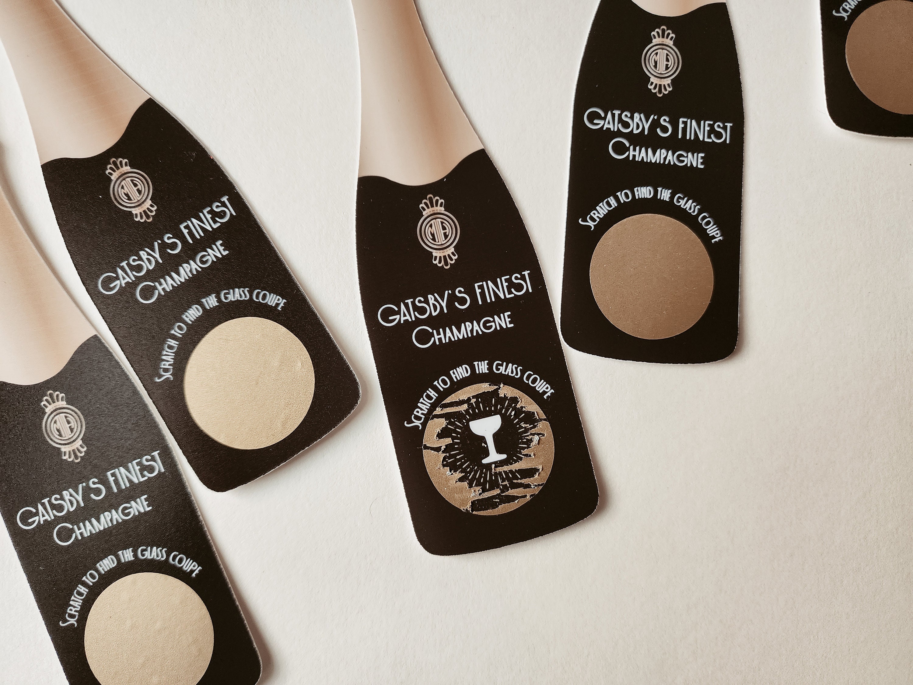 "These Great Gatsby champagne scratch-offs are great to get the fun started at your Gatsby part...