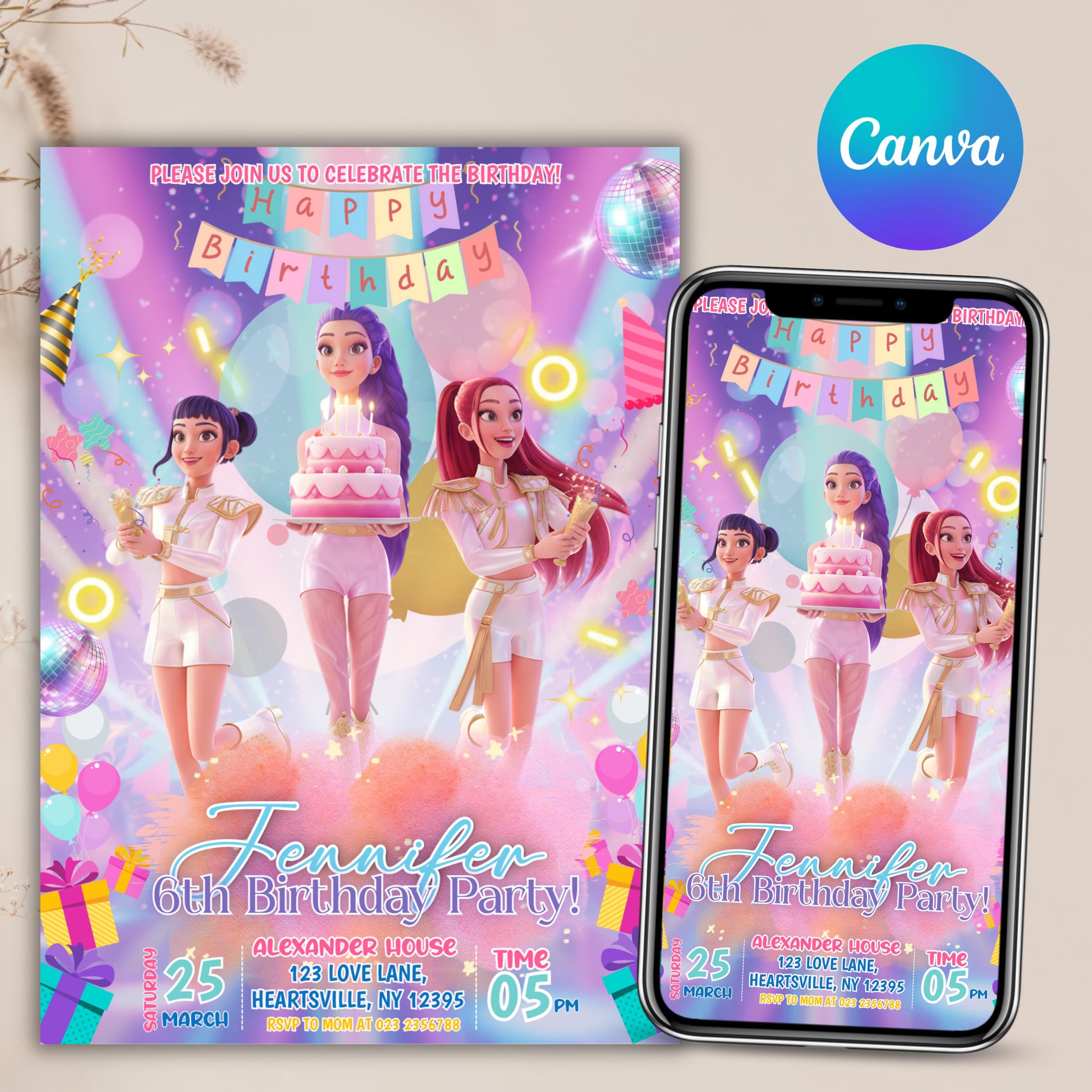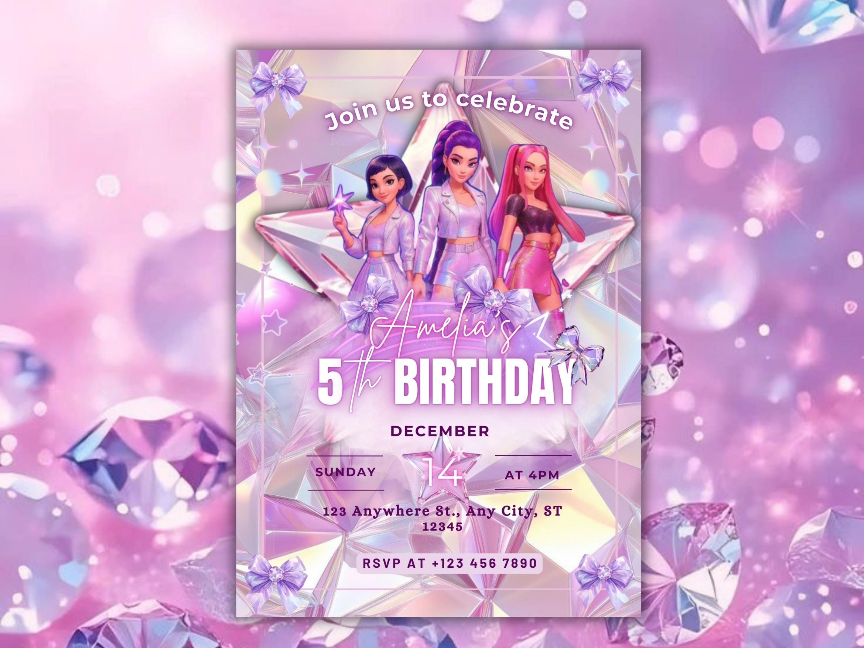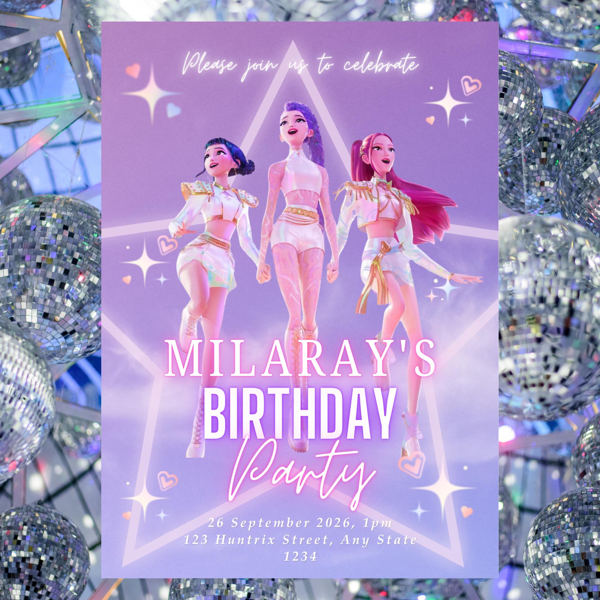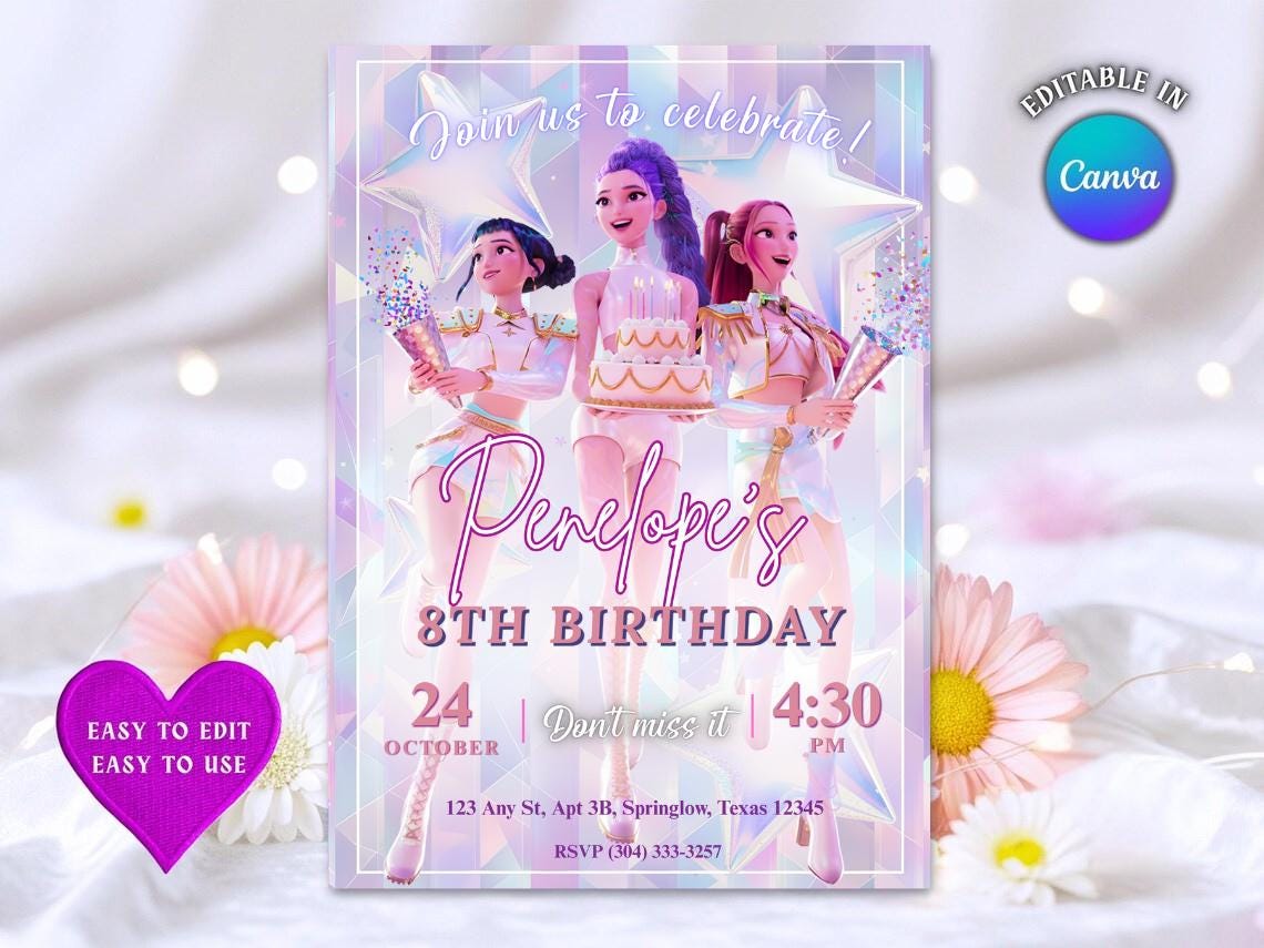 KPOP Demon Hunters Invitation Editable K-Pop Birthday Invitation KP...
