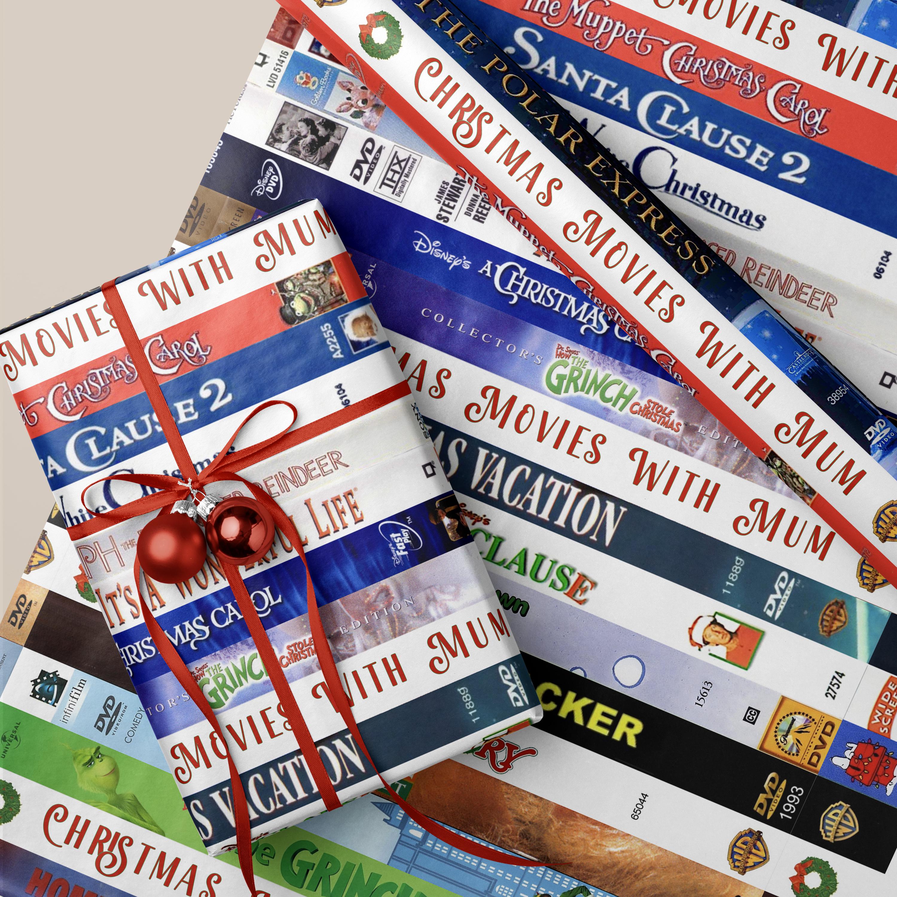 Retro Christmas Movie DVD Wrapping Paper Personalised Christmas Gif...