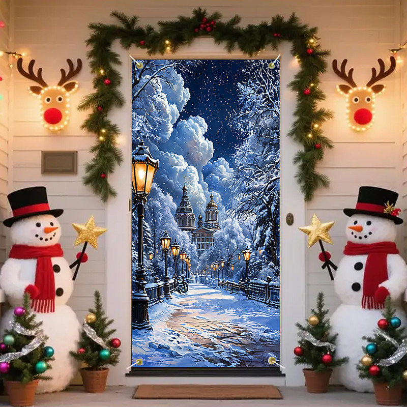 Christmas Posters Door Cover Outdoor Banners Winter Wonderland Cute...