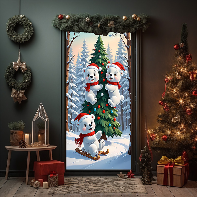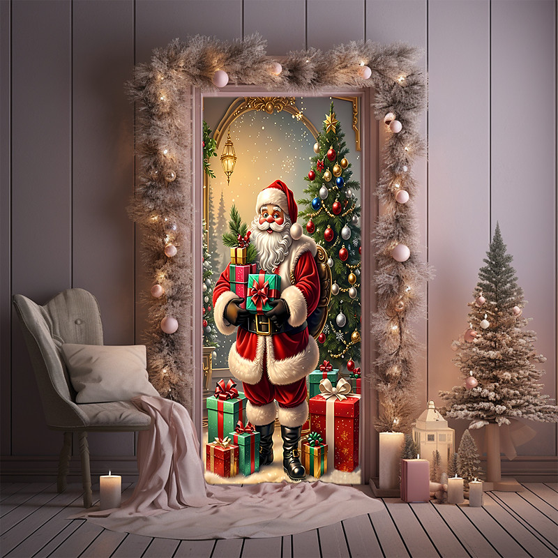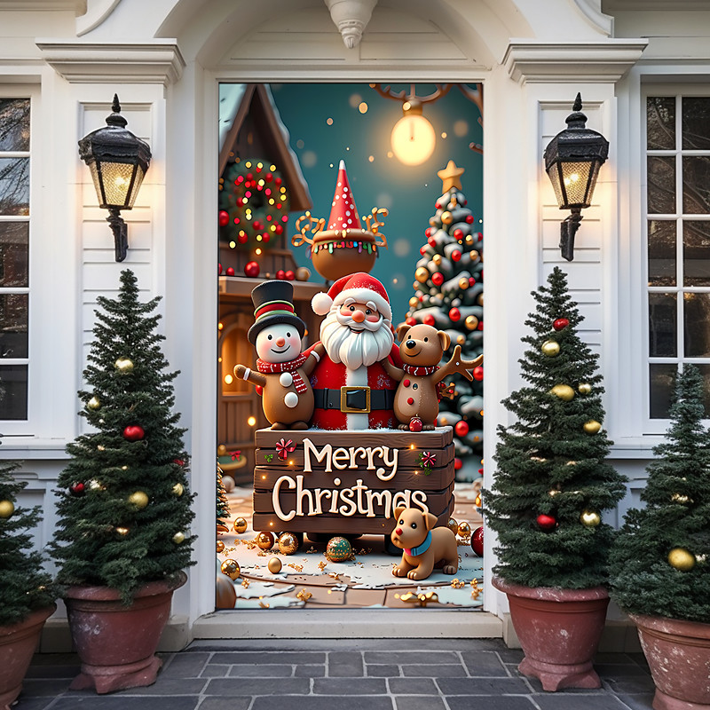 Christmas Posters Door Cover Outdoor Banners Santa Claus Cute 3D Pa...