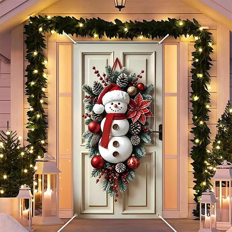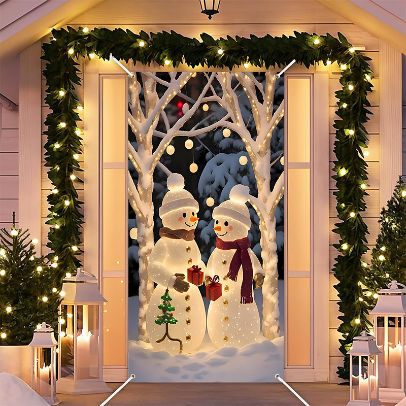 Christmas Posters Door Cover Outdoor Banners Snowman Stockings Cute...