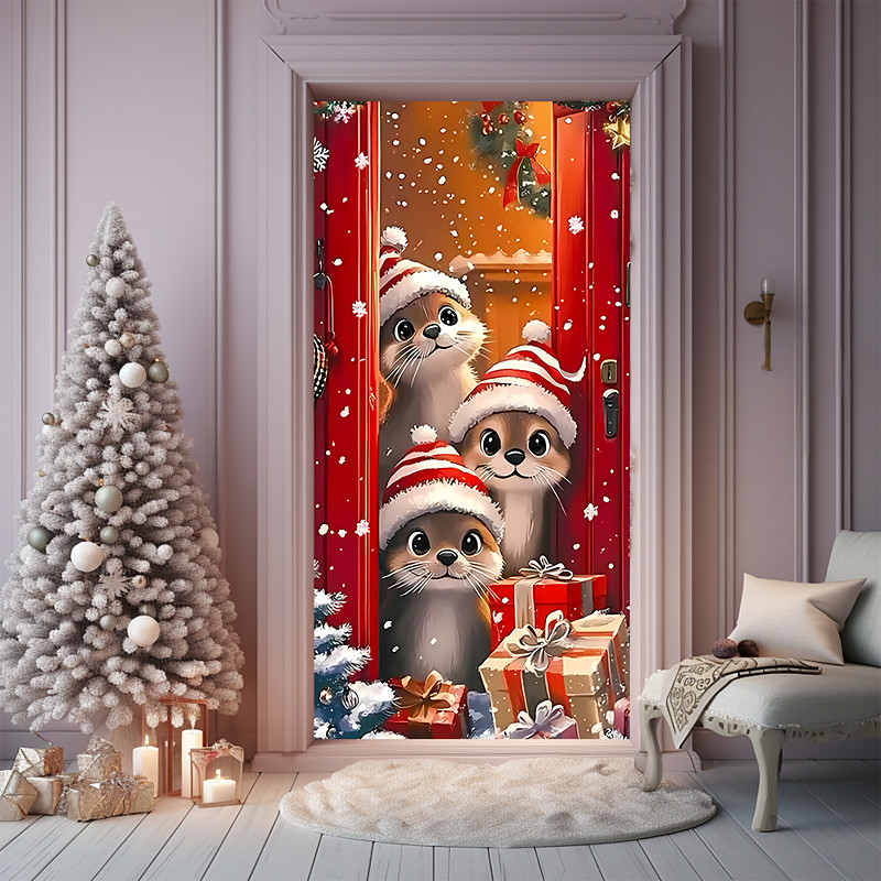 Christmas Posters Door Cover Outdoor Banners Santa Claus Squirrel C...