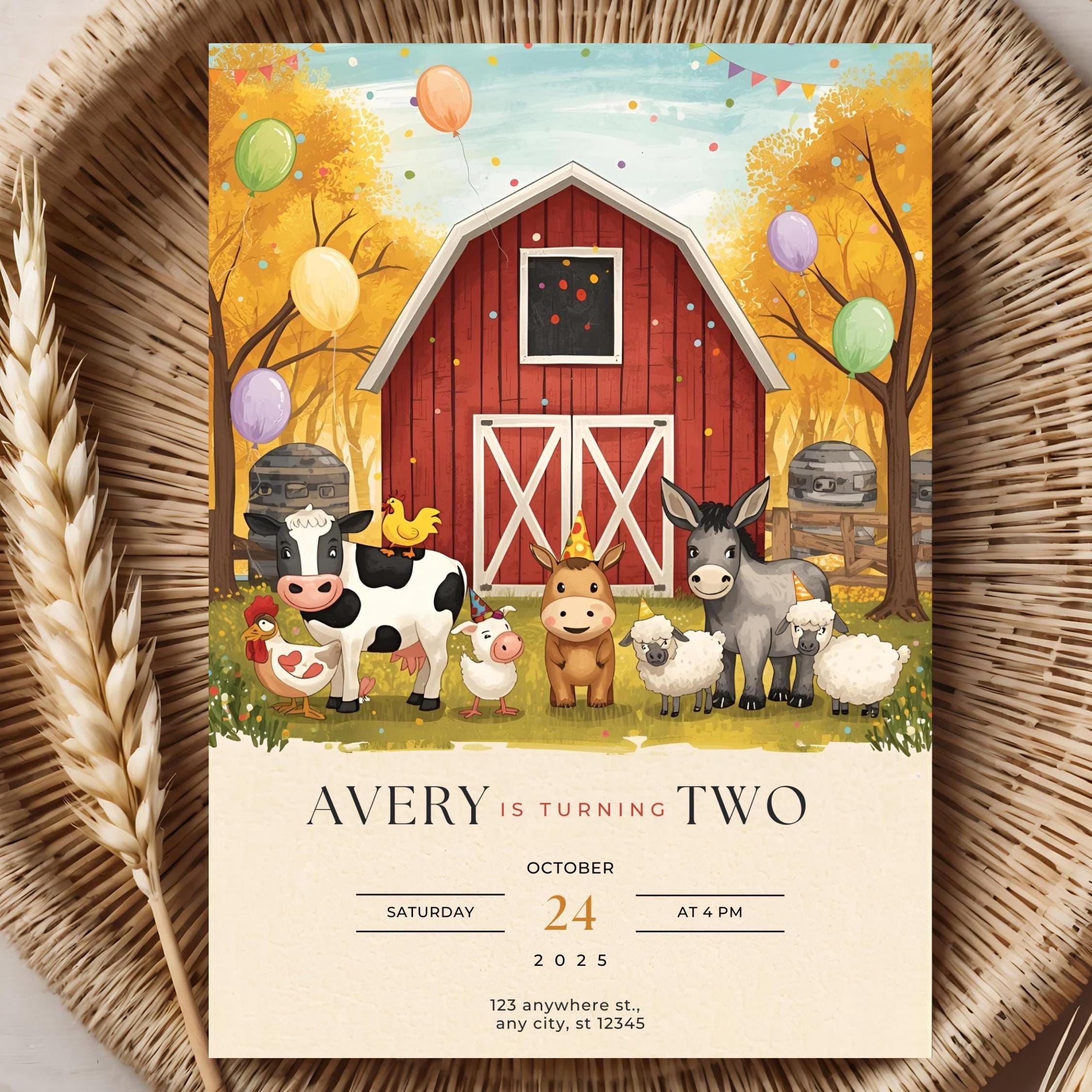 "Canva Editable Farm 2nd Birthday Invitation! Customizable Digital Canva Template Celebrate in ...
