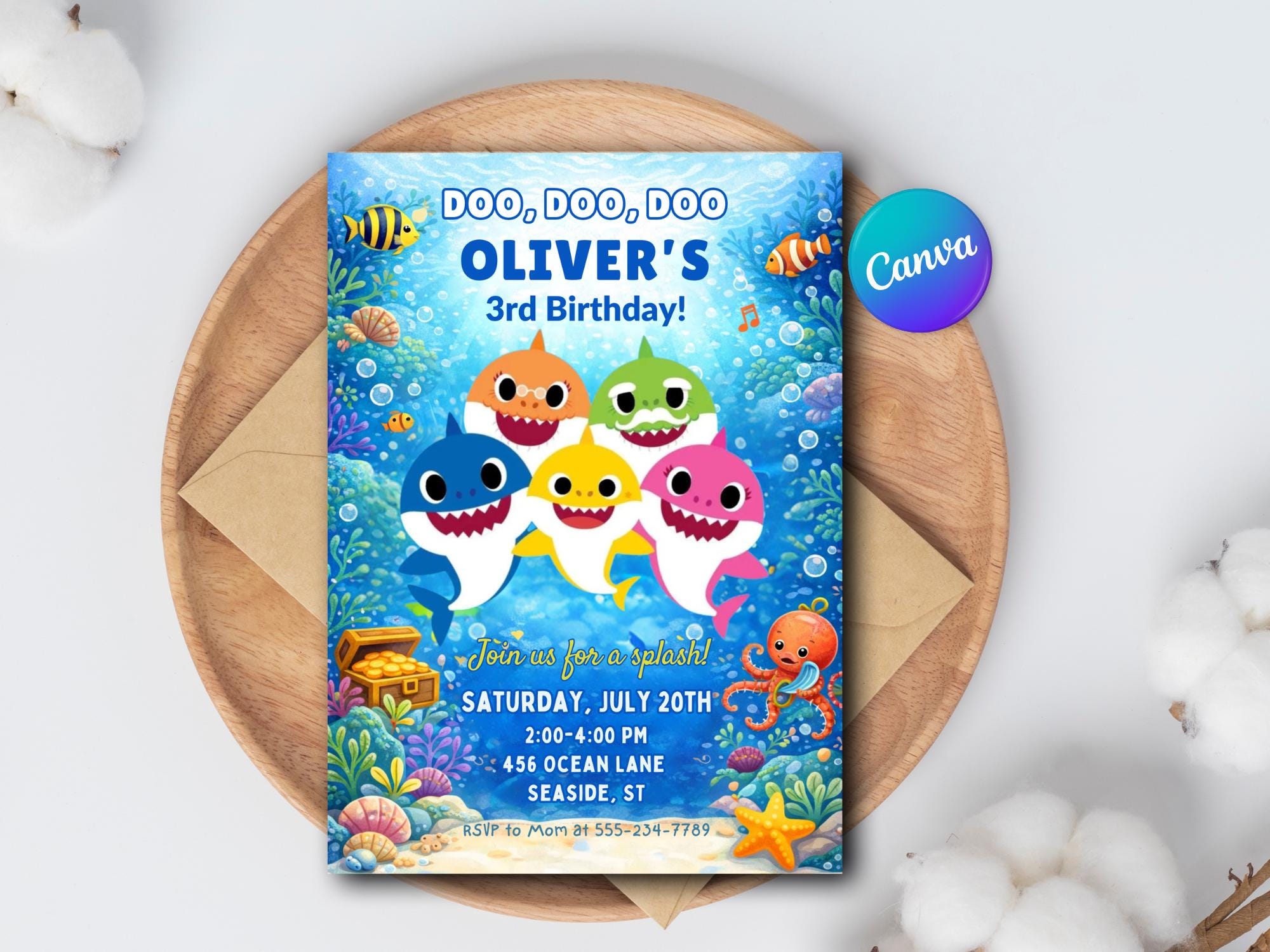 "Baby Shark Birthday Invitation - Editable & Printable! Get ready to go \"Doo, Doo, Do...