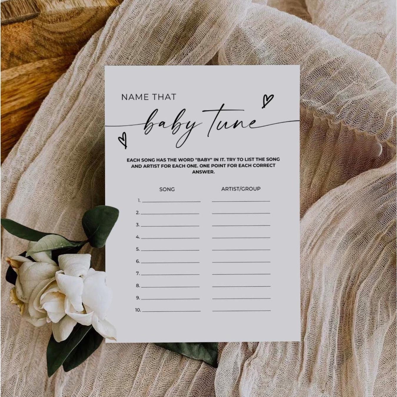 "( baby music game, name that baby tune, baby games, baby printables, minimal baby shower game,...